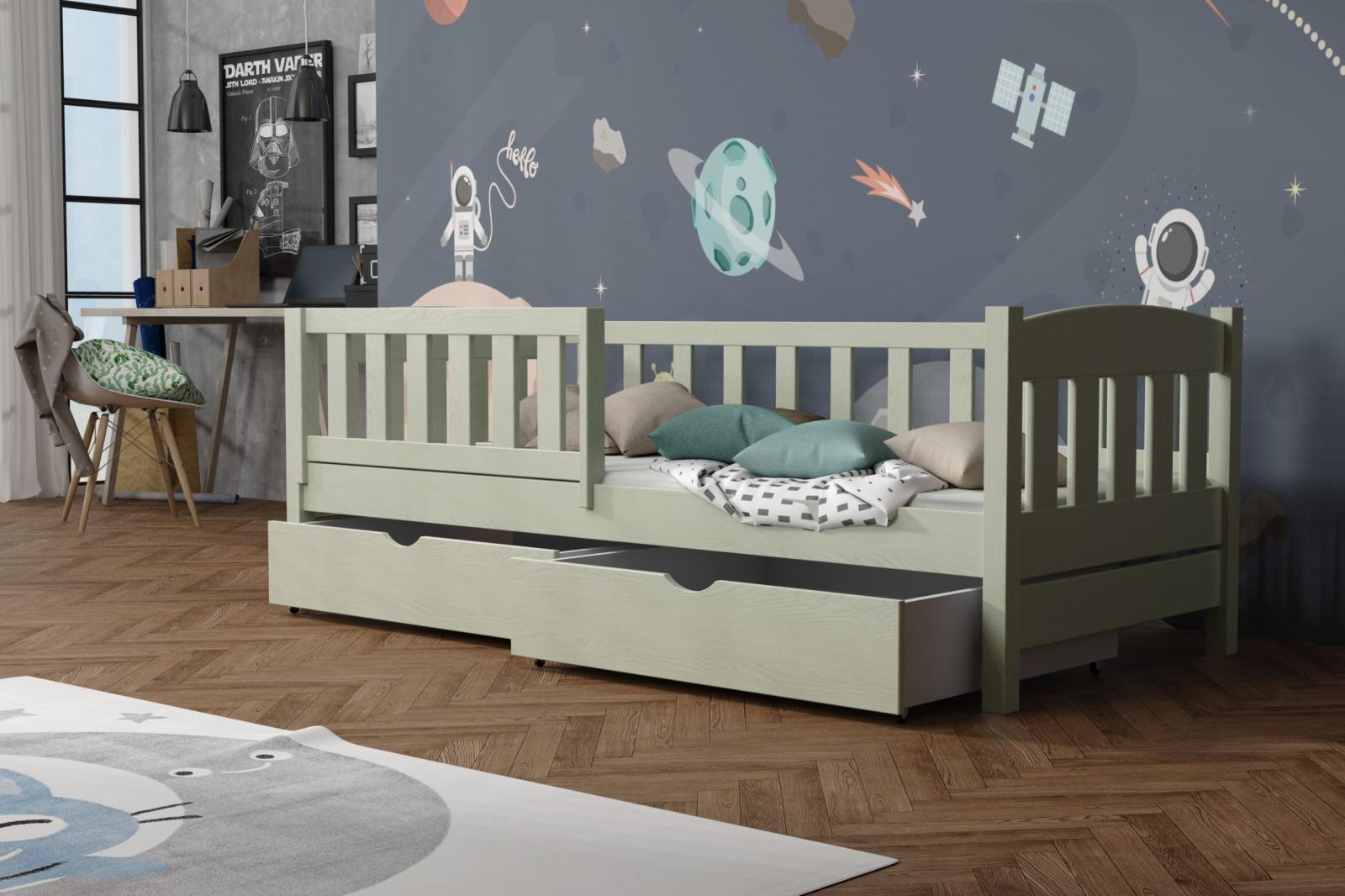 Dětská postel z masivu borovice BEN se šuplíky - 200x90 cm - OLIVOVĚ ZELENÁ
