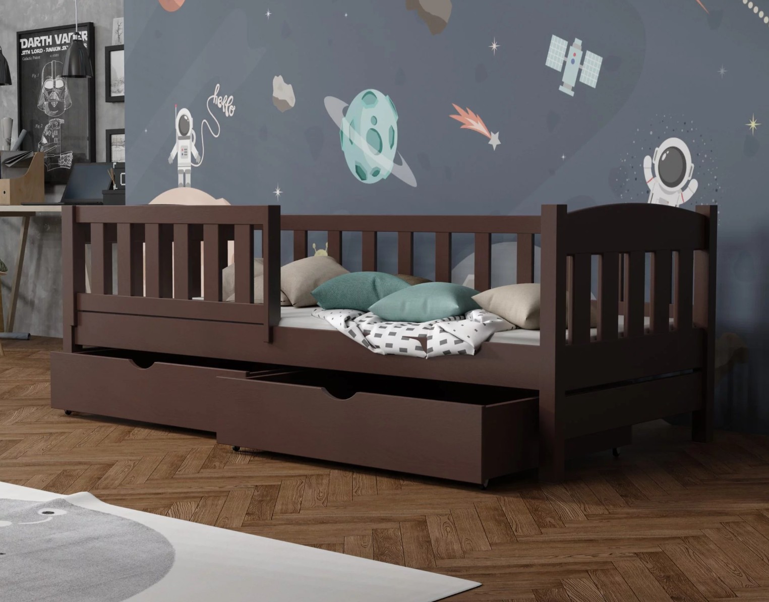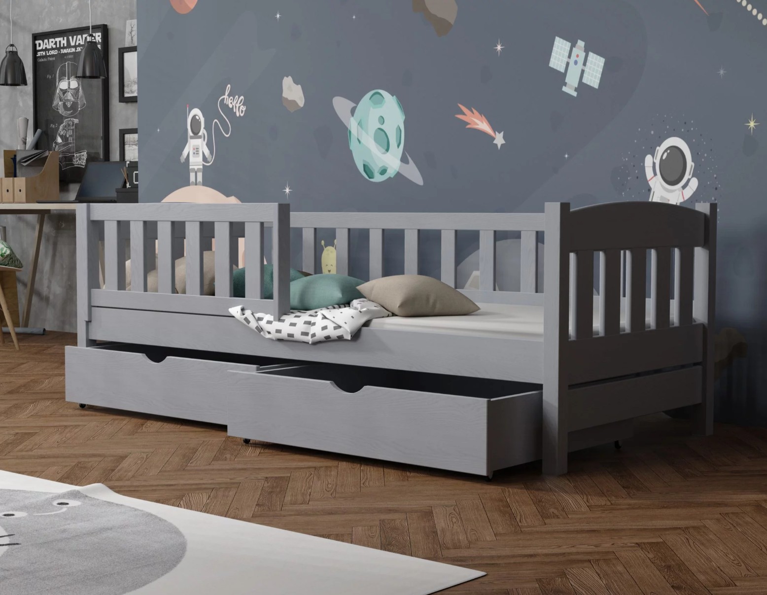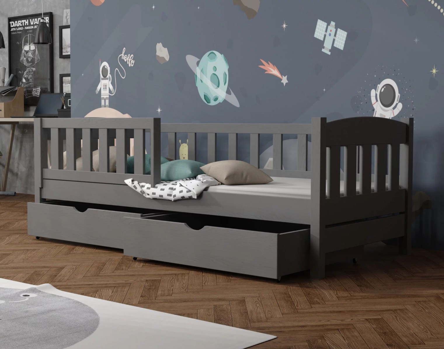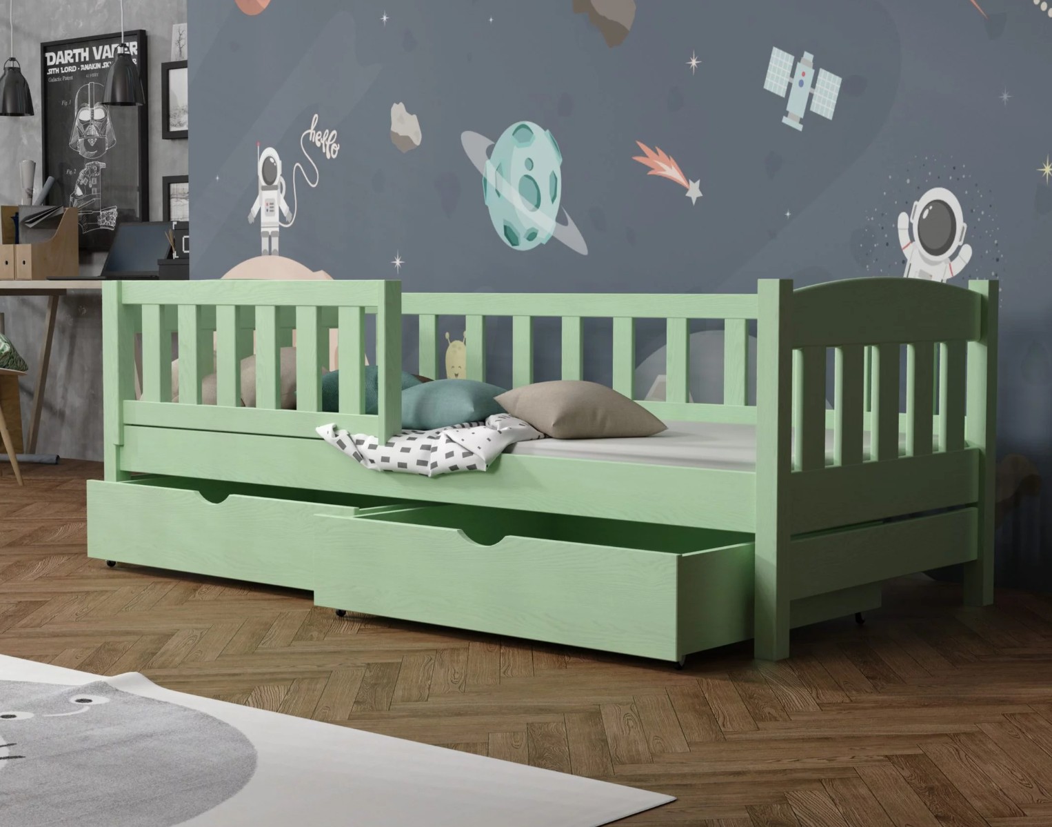 Postel BEN se díky minimalistickému designu hodí do každého interiéru. Tento model není jen místem pro noční odpočinek, ale také pro zábavu! Jednolůžková postel BEN je vyrobena z masivního borovicového dřeva, díky čemuž je mimořádně pevná a odolná proti poškození. U bočnic a čel je šířka použitého materiálu 2,6 cm. Bezpečnostní zábrana zajistí vašemu dítěti bezpečný spánek po celou noc a zabrání možnosti vypadnutí. Tento prvek lze odstranit, když dítě povyroste a již jej nepotřebuje. Postel nabízíme v několika barevných variantách, případně bez povrchových úprav. Surové dřevo nabízí přirozený vzhled. Postel je ekologická, odolná a lze ji snadno přizpůsobit - její vzhled můžete upravit mořením, lakováním nebo malováním dle vlastního uvážení. Barevné varianty jsou ošetřeny ekologickým lakem bez zápachu, který zvyšuje odolnost postele proti poškrábání. Postel dodáváme se dvěma prostornými šuplíky, které slouží k ukládání lůžkovin a pomohou udržet pořádek v dětském pokoji. Součástí postele je také kvalitní rošt.