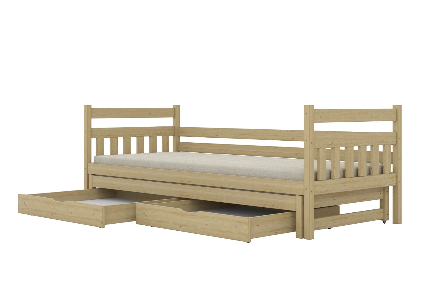 Dětská postel DAMIÁN v sobě spojuje bezpečnost, pohodlí a funkčnost. Díky svému jednoduchému a nadčasovému designu je perfektním doplňkem do nejrůznějších interiérů – od dětského pokoje až po moderní prostor pro mládež. Její pevná konstrukce z přírodního borovicového dřeva zajišťuje dlouhou životnost a další úložné prostory vám umožní udržet si pokoj v pořádku – což ocení jak rodiče, tak teenageři. Postel je vyrobena z masivního borovicového dřeva bez povrchových úprav, což nabízí přirozený vzhled. Postel je ekologická, odolná a lze ji snadno přizpůsobit - její vzhled můžete upravit mořením, lakováním nebo malováním dle vlastního uvážení. Přírodní, neupravený povrch umožňuje nábytku dýchat a je také ideální do dětských pokojů a pokojů pro alergiky. Součástí postele je také pevný a odolný flex rošt vyrobený z březových lamel.