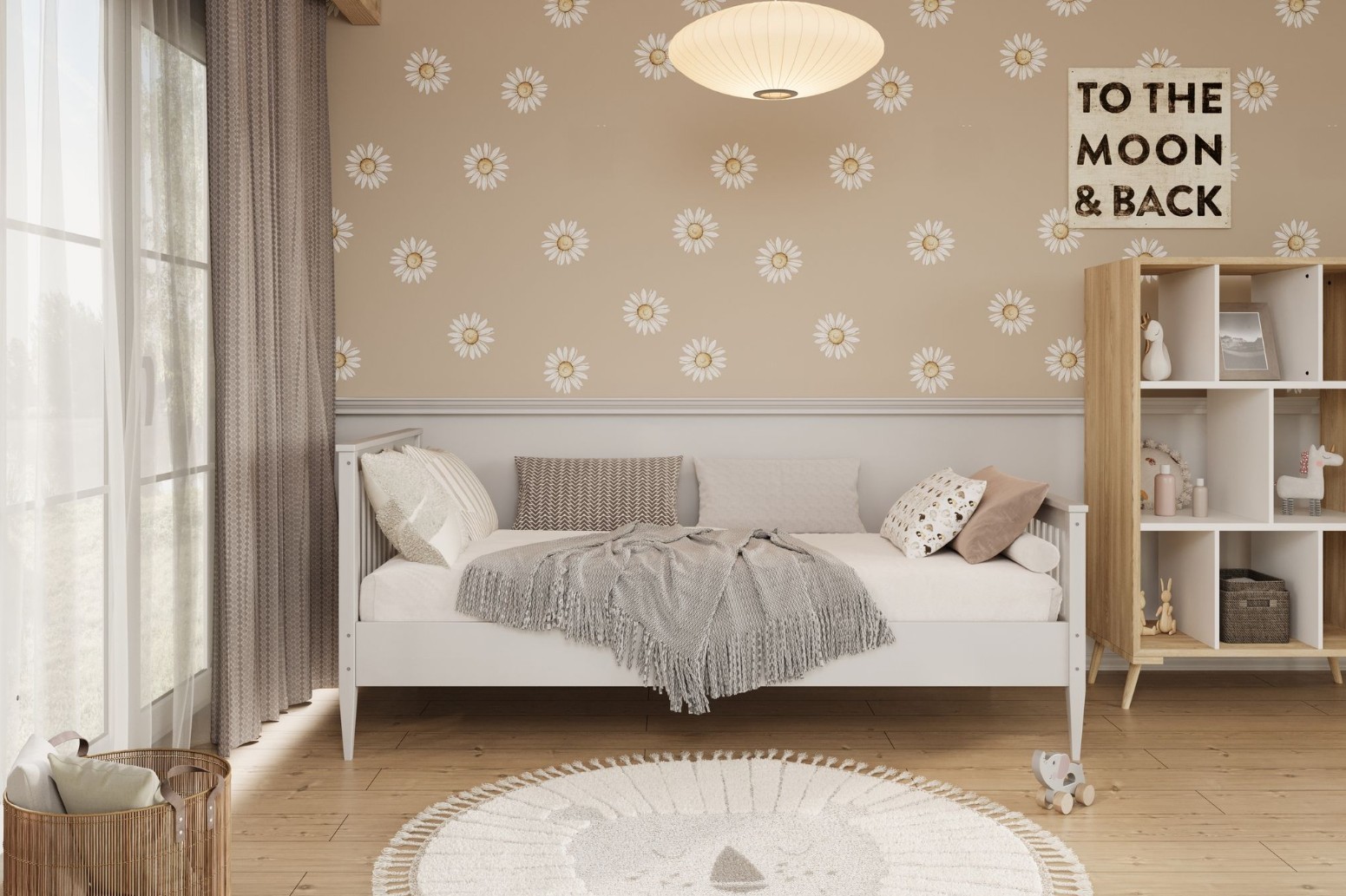 Dětská postel EMILIE je kombinací elegance, bezpečnosti a jednoduchého designu. Štíhlé linie a klasická žebrovaná čela dodávají nábytku lehkost a styl. Postel je vyrobena z masivního borovicového dřeva a je ošetřena ekologickým lakem na vodní bázi, který zvyšuje odolnost postele vůči poškození a poškrábání. Postel kombinuje funkčnost, odolnost a estetiku a vytváří příjemný prostor pro spánek a odpočinek. Součástí postele je také pevný a odolný flex rošt vyrobený z březových lamel. Skvěle se hodí jak do dětského pokoje, tak i do pokoje pro dospívající.