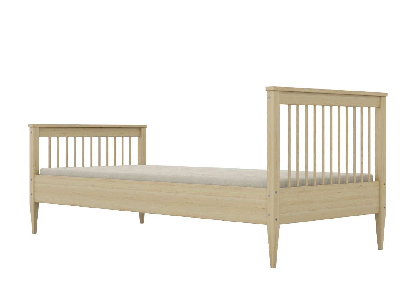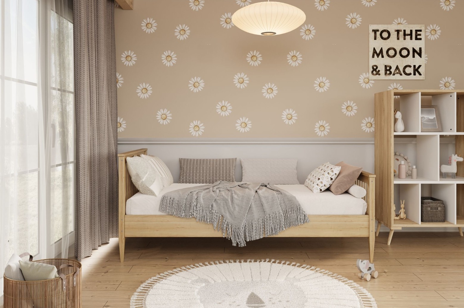 Dětská postel EMILIE je kombinací elegance, bezpečnosti a jednoduchého designu. Štíhlé linie a klasická žebrovaná čela dodávají nábytku lehkost a styl. Postel je vyrobena z masivního borovicového dřeva a je ošetřena ekologickým lakem na vodní bázi, který zvyšuje odolnost postele vůči poškození a poškrábání. Postel kombinuje funkčnost, odolnost a estetiku a vytváří příjemný prostor pro spánek a odpočinek. Součástí postele je také pevný a odolný flex rošt vyrobený z březových lamel. Skvěle se hodí jak do dětského pokoje, tak i do pokoje pro dospívající.