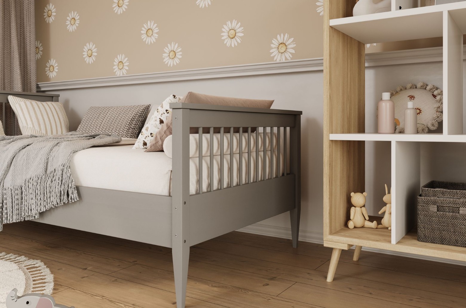 Dětská postel EMILIE je kombinací elegance, bezpečnosti a jednoduchého designu. Štíhlé linie a klasická žebrovaná čela dodávají nábytku lehkost a styl. Postel je vyrobena z masivního borovicového dřeva a je ošetřena ekologickým lakem na vodní bázi, který zvyšuje odolnost postele vůči poškození a poškrábání. Postel kombinuje funkčnost, odolnost a estetiku a vytváří příjemný prostor pro spánek a odpočinek. Součástí postele je také pevný a odolný flex rošt vyrobený z březových lamel. Skvěle se hodí jak do dětského pokoje, tak i do pokoje pro dospívající.