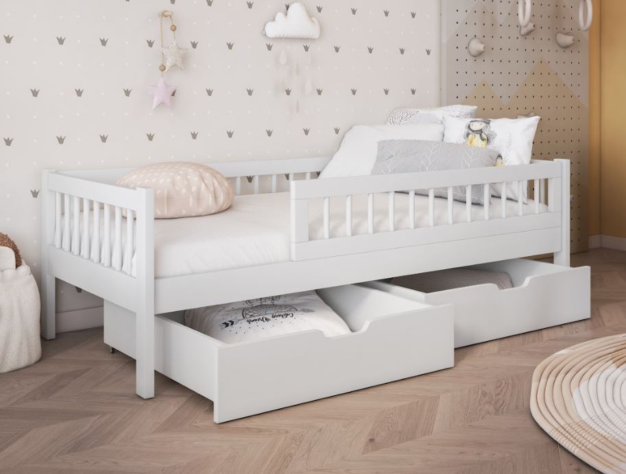 Dětská postel z masivu borovice FLORES je elegantní jednolůžko, které dokonale kombinuje funkčnost s moderním designem. Postel se vyznačuje svou praktičností a atraktivním designem, který skvěle zapadne do každého dětského pokoje. Postel je vyrobena z velice kvalitního borovicového dřeva, které je ošetřeno třemi vrstvami ekologického laku. Tím je zajištěna vysoká odolnost postele vůči mechanickému poškození a různým druhům nečistot. Bezpečnost dětí zajišťují vysoké bočnice a ochranná bariéra, která zabrání nechtěným pádům dítěte během spánku. Postel je dodávána se dvěma prostornými šuplíky na kolečkách, kam si můžete uložit lůžkoviny, hračky nebo jiné nezbytnosti.