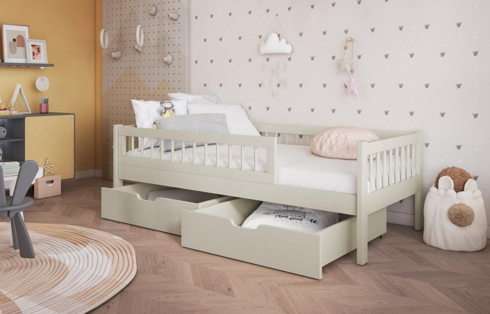Dětská postel z masivu borovice FLORES se šuplíky - 180x80 cm - kašmírová