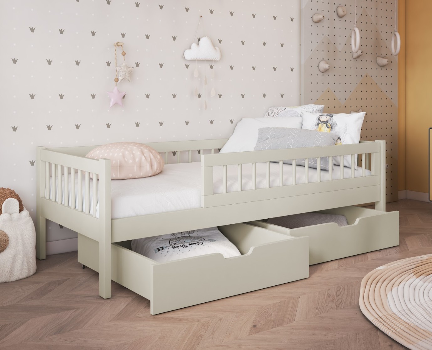 Dětská postel z masivu borovice FLORES se šuplíky - 200x90 cm - kašmírová