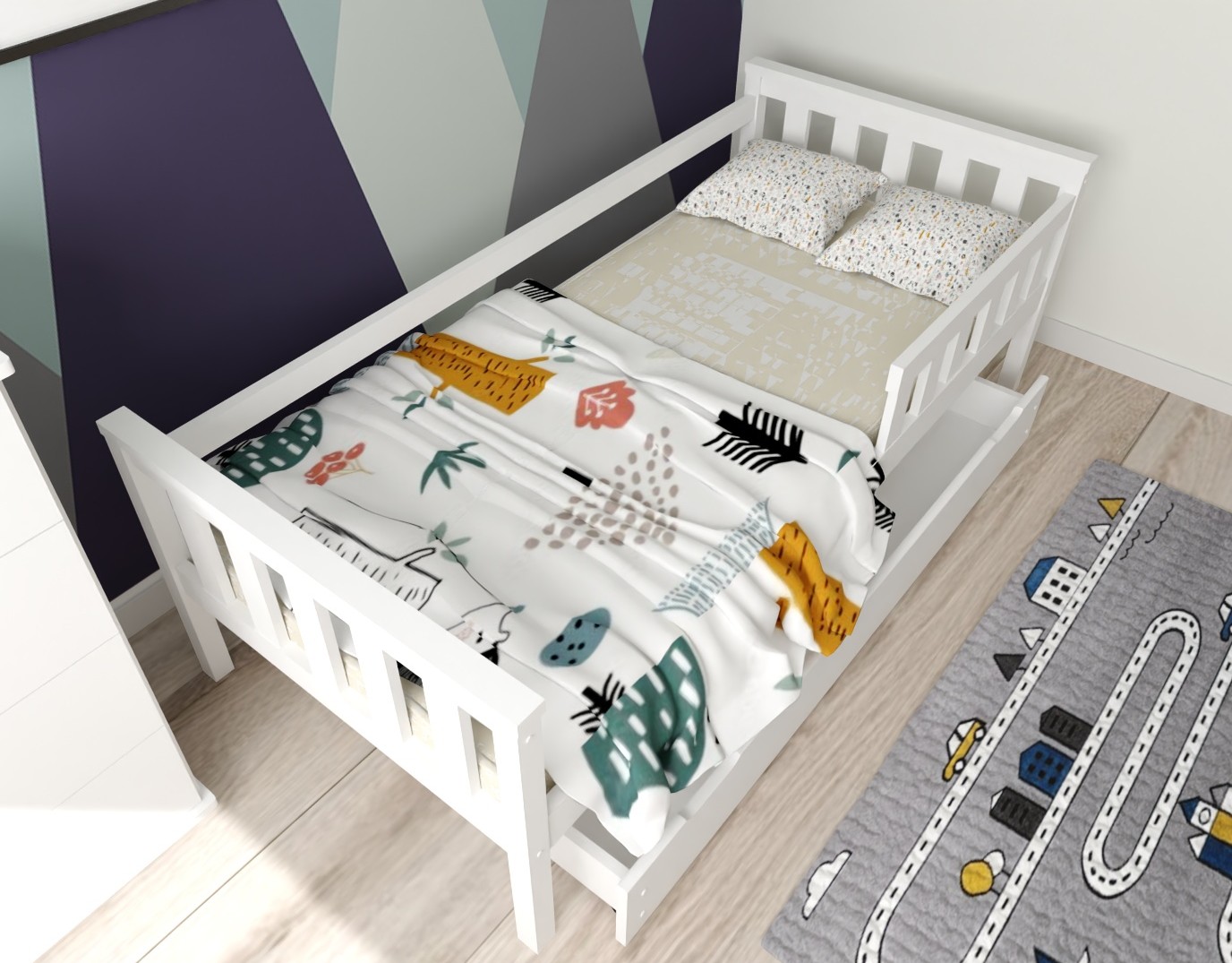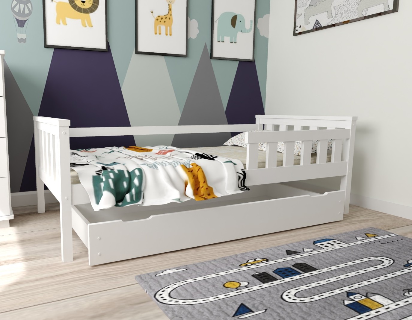 Dětská postel z masivu borovice FRANK nabízí vynikající volbu pro ty, kdo hledají robustní a kvalitní postel. Je praktická a má atraktivní design. Tato postel je vyrobena z prvotřídního borovicového dřeva, které má mnoho výhod. Dřevo se snadno zpracovává, je pružné a zároveň velmi pevné. Postel je pokryta ekologickým lakem, což zajišťuje vysokou odolnost vůči mechanickému poškození a nečistotám. Bezpečnost dětí zajišťuje ochranná bariéra, kterou lze namontovat na pravou i levou stranu postele. K posteli je rovněž dodáván pevný laťkový rošt. Postel lze zakoupit také ve variantě se šuplíkem na kolečkách, který má praktické výřezy pro snadnou manipulaci. Maximální nosnost postele je 90 kg.