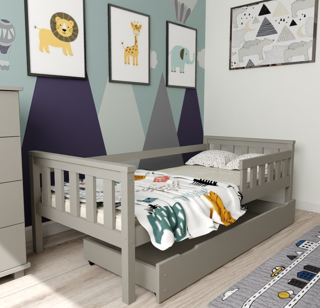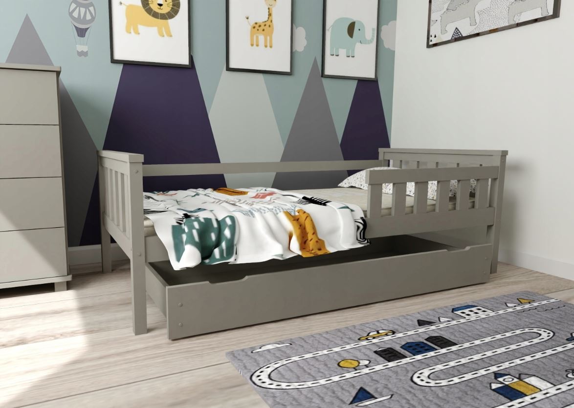 Dětská postel z masivu borovice FRANK nabízí vynikající volbu pro ty, kdo hledají robustní a kvalitní postel. Je praktická a má atraktivní design. Tato postel je vyrobena z prvotřídního borovicového dřeva, které má mnoho výhod. Dřevo se snadno zpracovává, je pružné a zároveň velmi pevné. Postel je pokryta ekologickým lakem, což zajišťuje vysokou odolnost vůči mechanickému poškození a nečistotám. Bezpečnost dětí zajišťuje ochranná bariéra, kterou lze namontovat na pravou i levou stranu postele. K posteli je rovněž dodáván pevný laťkový rošt. Postel lze zakoupit také ve variantě se šuplíkem na kolečkách, který má praktické výřezy pro snadnou manipulaci. Maximální nosnost postele je 90 kg.