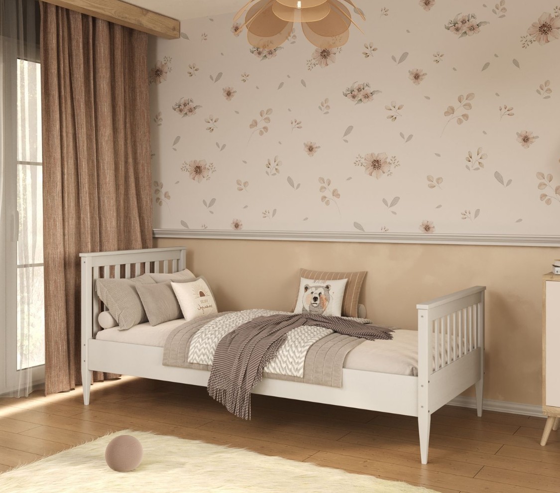 Dětská postel IGNÁC je kombinací elegance, bezpečnosti a jednoduchého designu. Štíhlé linie a klasická žebrovaná čela dodávají nábytku lehkost a styl. Postel je vyrobena z masivního borovicového dřeva a je ošetřena ekologickým lakem na vodní bázi, který zvyšuje odolnost postele vůči poškození a poškrábání. Postel kombinuje funkčnost, odolnost a estetiku a vytváří příjemný prostor pro spánek a odpočinek. Součástí postele je také pevný a odolný flex rošt vyrobený z březových lamel. Skvěle se hodí jak do dětského pokoje, tak i do pokoje pro dospívající.