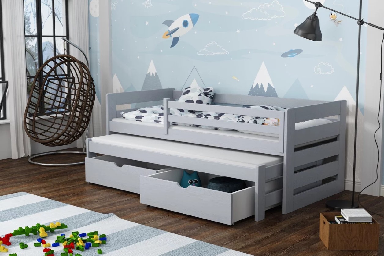 Dětská postel z masivu borovice JOLANA s přistýlkou a šuplíky - 200x90 cm - ŠEDÁ