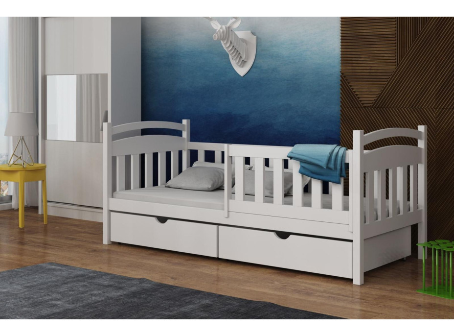 Dětská postel z masivu borovice KORNÉLIE se šuplíky - 190x90 cm - BÍLÁ
