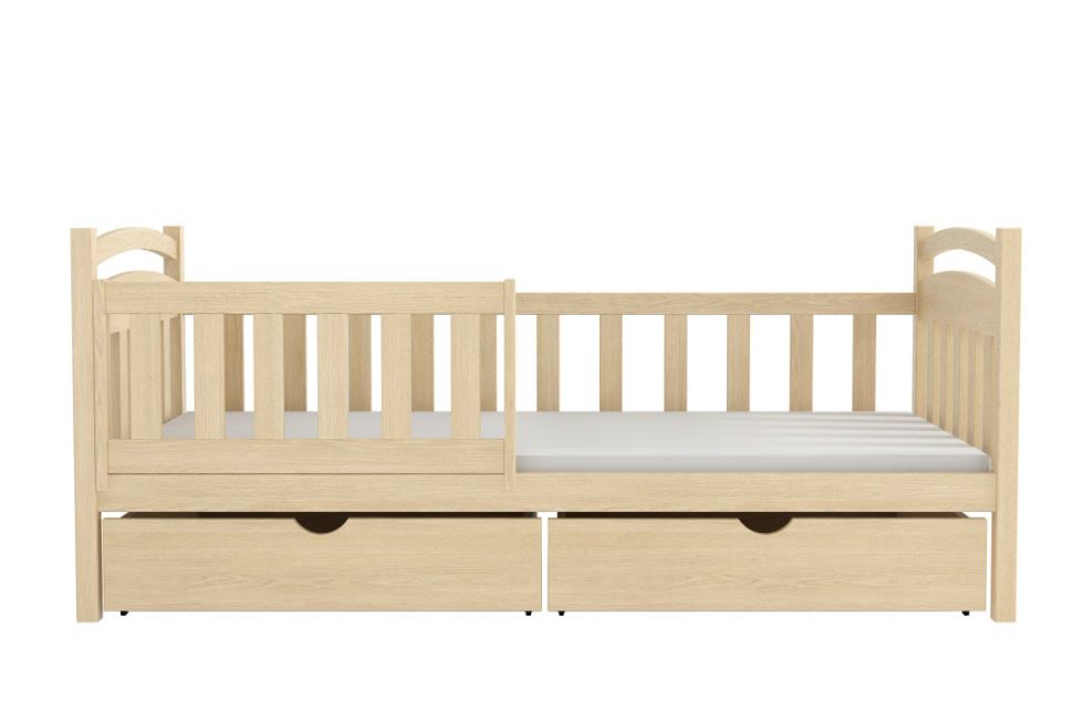Při výběru postele Kornélie volíte klasické nadčasové řešení, které bude vašemu dítěti sloužit po mnoho let. Jednoduchost všech prvků přispívá k mimořádné eleganci nábytku a jeho univerzálnímu charakteru, který zapadne do každého dětského pokoje. Postel Kornélie je jednolůžko přizpůsobené dětským potřebám s jednoduchou, velmi odolnou konstrukcí. Vysoké opěrky hlavy, vysoké a široké příčky a ochranná bariérka zajistí, že dítě bude během spánku nejen chráněno před pádem, ale také si může v posteli přes den volně hrát. Odnímatelná bariérka je univerzální, lze ji umístit na pravou i levou stranu postele. Postel je vyrobená z masivního borovicového dřeva s vysokou nosností a odolností proti poškození. U bočnic a čel je šířka použitého materiálu 2,6 cm. Postel je ošetřena zdravotně nezávadným lakem na vodní bázi, který je zcela bez zápachu a neobsahuje žádné škodlivé látky. Součástí postele jsou dva prostorné šuplíky pro uložení lůžkovin a hraček a kvalitní pevný laťkový rošt.