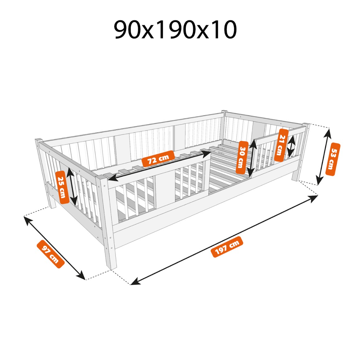 - Celková výška postele: 53 cm