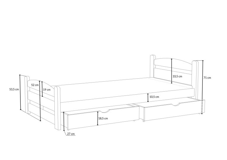 - Celková výška postele: 71 cm