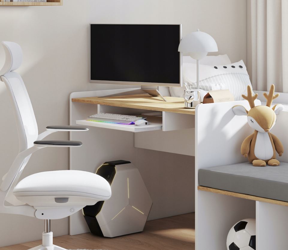 Postel MEGAN s psacím stolem – funkčnost a pohodlí v jednom Hledáte praktické řešení do dětského nebo teenagerského pokoje? Postel Megan s psacím stolem je ideálním řešením do malých interiérů, kde se počítá každý centimetr prostoru. Tento multifunkční kus nábytku kombinuje pohodlné místo na spaní s ergonomickým prostorem pro studium a práci. Další výhodou jsou prostorné zásuvky, které poskytují další úložný prostor. Postel je velmi pečlivě vyrobena, má robustní konstrukci a je propracována do posledního detailu. Borovicové dřevo, které se používá k výrobě rámu, je té nejvyšší kvality bez použití lepených desek. Postel je odolná proti poškrábání a to díky třem vrstvám ekologického laku. Lak je bez zápachu a vyznačuje se vynikající světlostálostí. Konstrukce ze dřeva je kombinována s nábytkovou deskou v odstínu dub shetland, které krásně dotvoří celkový vzhled postele. Kombinace dřeva a nábytkové desky dělá postel nejen pevnou, ale také skvěle vypadá a dodává interiéru moderní charakter. Tato postel je ideální do malých prostor, kombinuje spací a studijní prostor a má mnoho úložných prostor. Součástí postele je psací stůl s výsuvnou deskou na klávesnici. Postel je doplněna o lavici s otevřenými policemi a pohodlným sedákem s pěnovou výplní. Další úložné prostory tvoří dva šuplíky zakomponované do konstrukce postele.