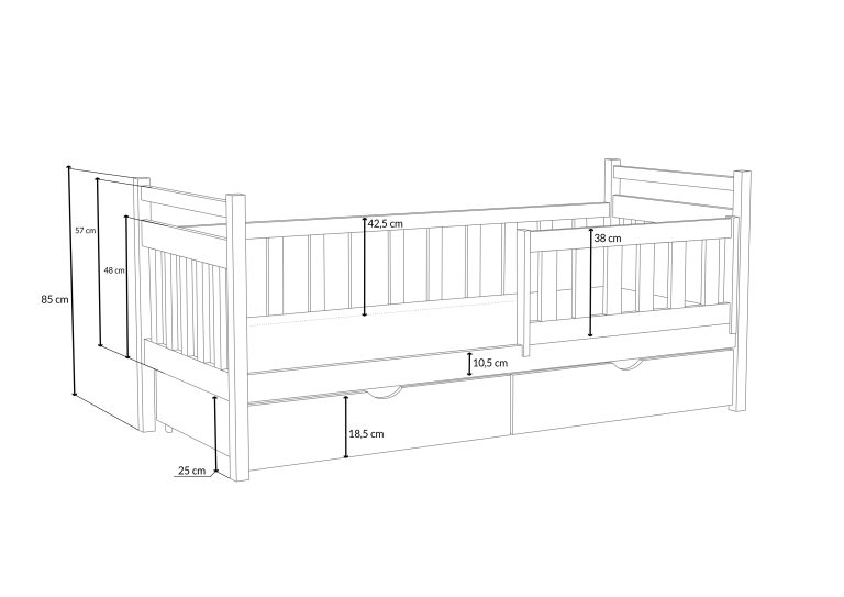 Natálie je klasická jednolůžková postel, která se bude dobře vyjímat v každém dětském pokojíčku. Konstrukce z borovicového dřeva je pevná a odolná a minimalistický vzhled zapadne téměř do každého interiéru. Jednoduchá konstrukce jde ruku v ruce s velmi vysokou odolností a nosností, díky čemuž postýlka bez problémů odolá i dětským hrám. U bočnic a čel je šířka použitého materiálu 2,6 cm. Postel je pokryta lakem na vodní bázi, který nenese riziko zdravotních problémů. Bezpečnost dětí během spánku zajišťuje ochranná bariérka s univerzální možností montáže na pravou i levou stranu postele. Součástí postele jsou dva prostorné šuplíky, které slouží k uložení lůžkovin a hraček a pevný laťkový rošt.