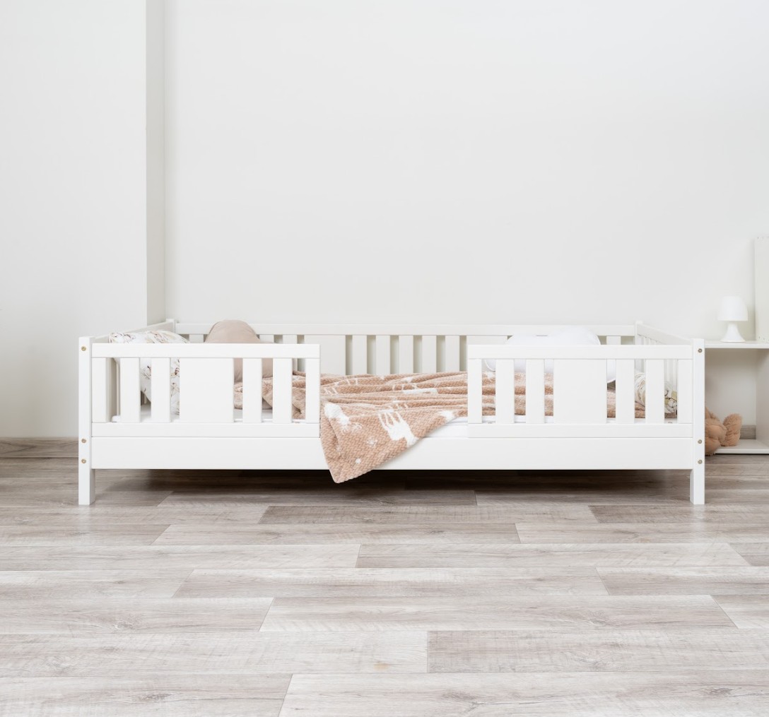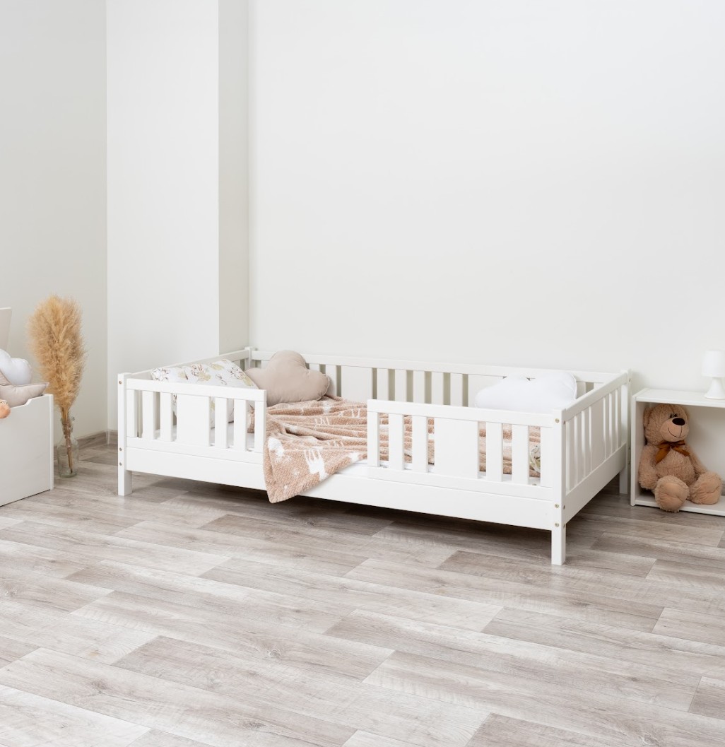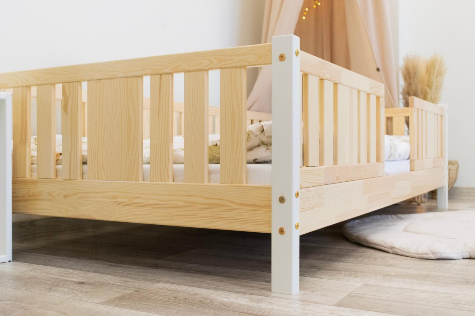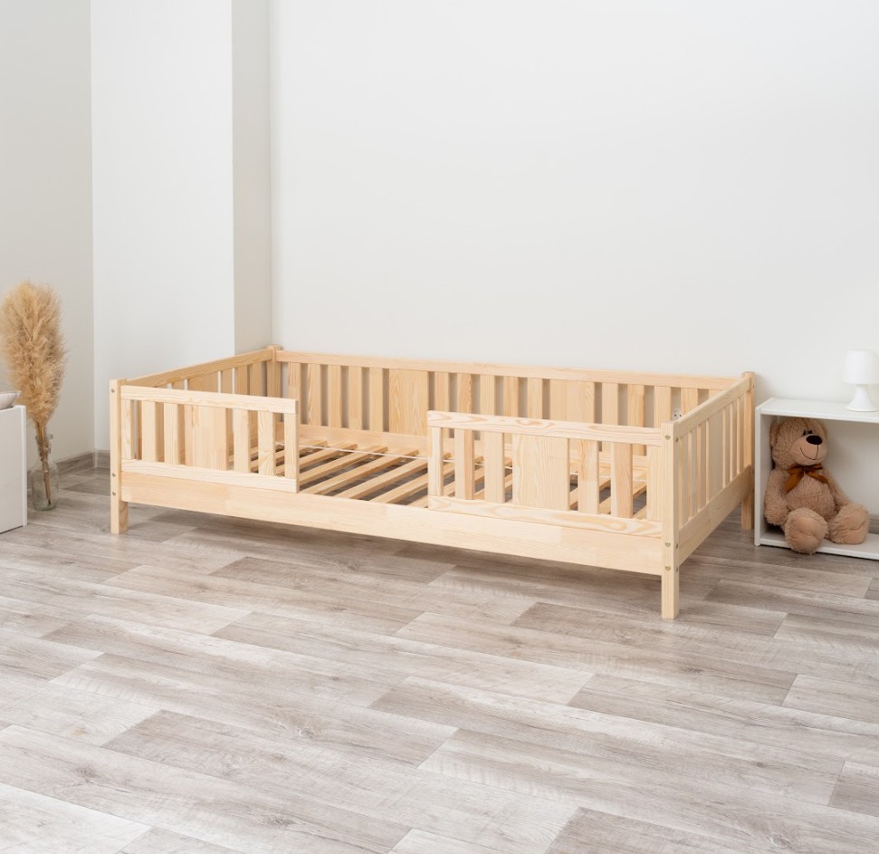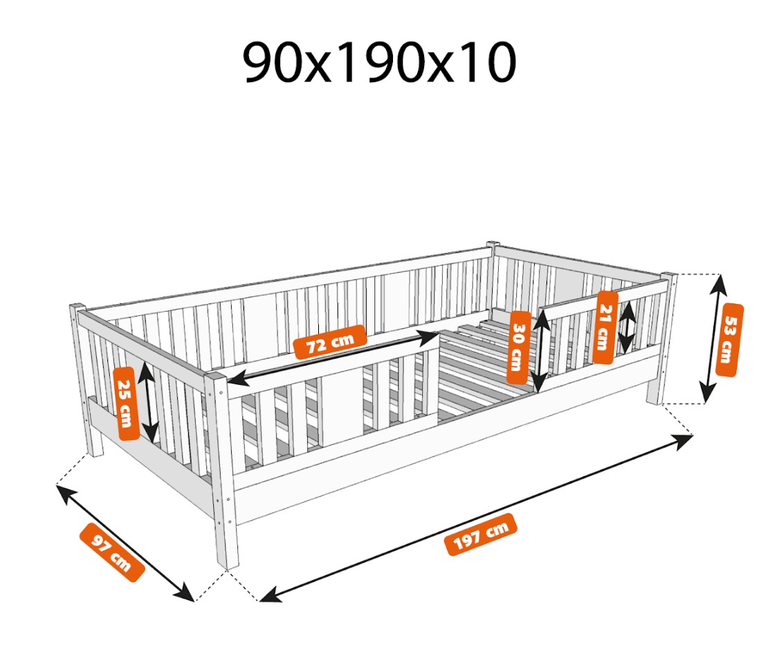 NIKO 10 cm je dřevěná dětská postel s vyvýšenou konstrukcí, navržená s ohledem na pohodlí a praktičnost. Díky 10 cm vysokým nohám si postel zachovává nízký profil a zároveň umožňuje snadné čištění pod ní. Je to ideální volba pro rodiče, kteří hledají bezpečnou, funkční a odolnou borovicovou postel pro své dítě. Postel NIKO 10 je vyrobena výhradně z přírodního borovicového dřeva, známého pro svou odolnost a hřejivý, příjemný vzhled. Všechny prvky jsou hladce broušené a zaoblené, což zajišťuje naprostou bezpečnost i pro nejmenší děti. Povrchová úprava je provedena ekologickými barvami na vodní bázi, které splňují evropskou normu EN 71-3 – bez zápachu, toxinů a škodlivých látek. Díky tomu je postel NIKO 10 ideální do pokojů alergiků nebo kojenců. Postel nabízíme také ve verzi bez povrchových úprav - nelakované dřevo. Díky tomu ji lze snadno přizpůsobit - její vzhled můžete upravit mořením, lakováním nebo malováním dle vlastního uvážení. Každý prvek rámu byl precizně vyleštěn a hrany jsou jemně zaoblené, aby bylo zajištěno maximální pohodlí a bezpečnost. Bezpečnostní zábrany u vstupu do postele jsou odnímatelné.