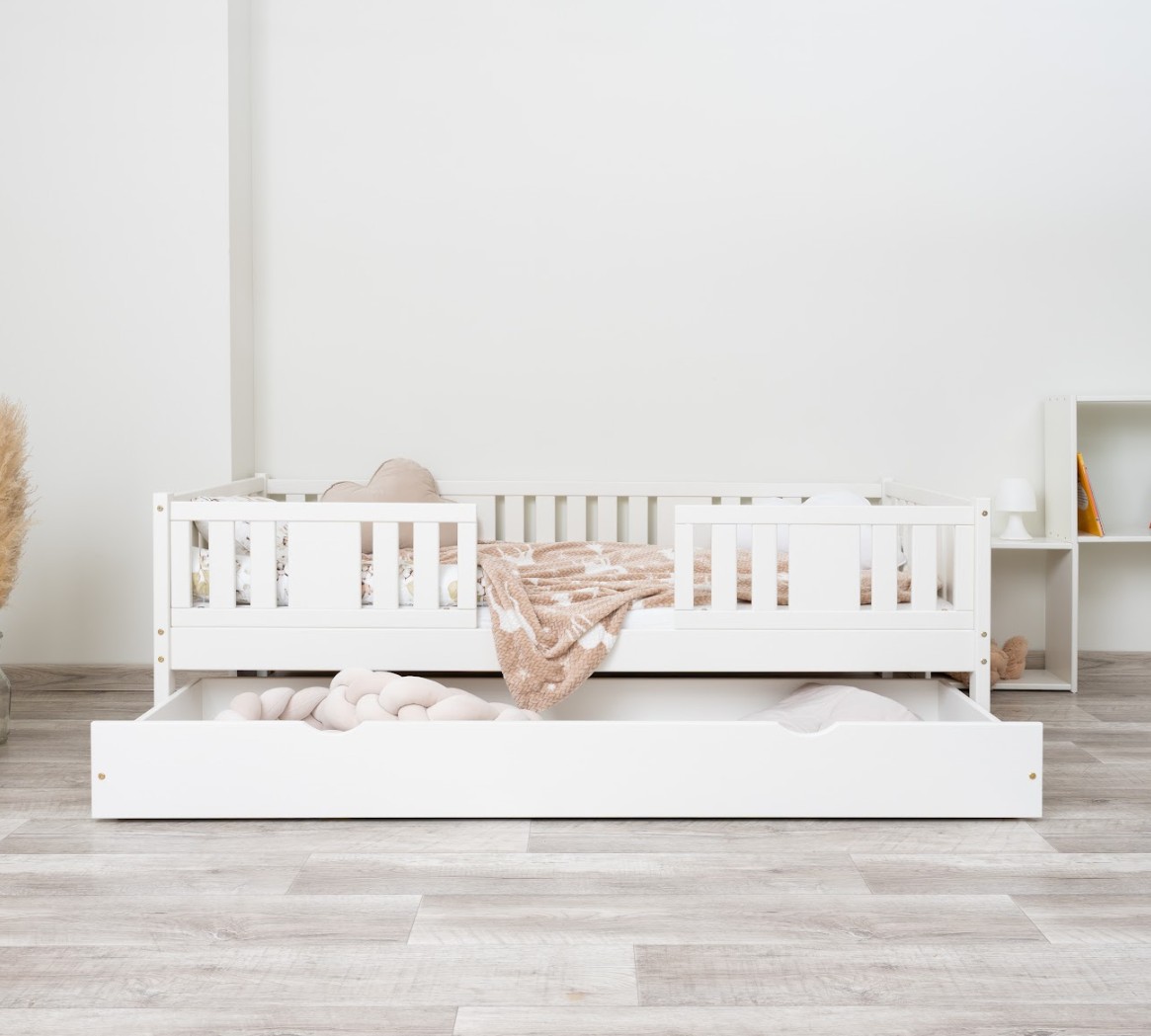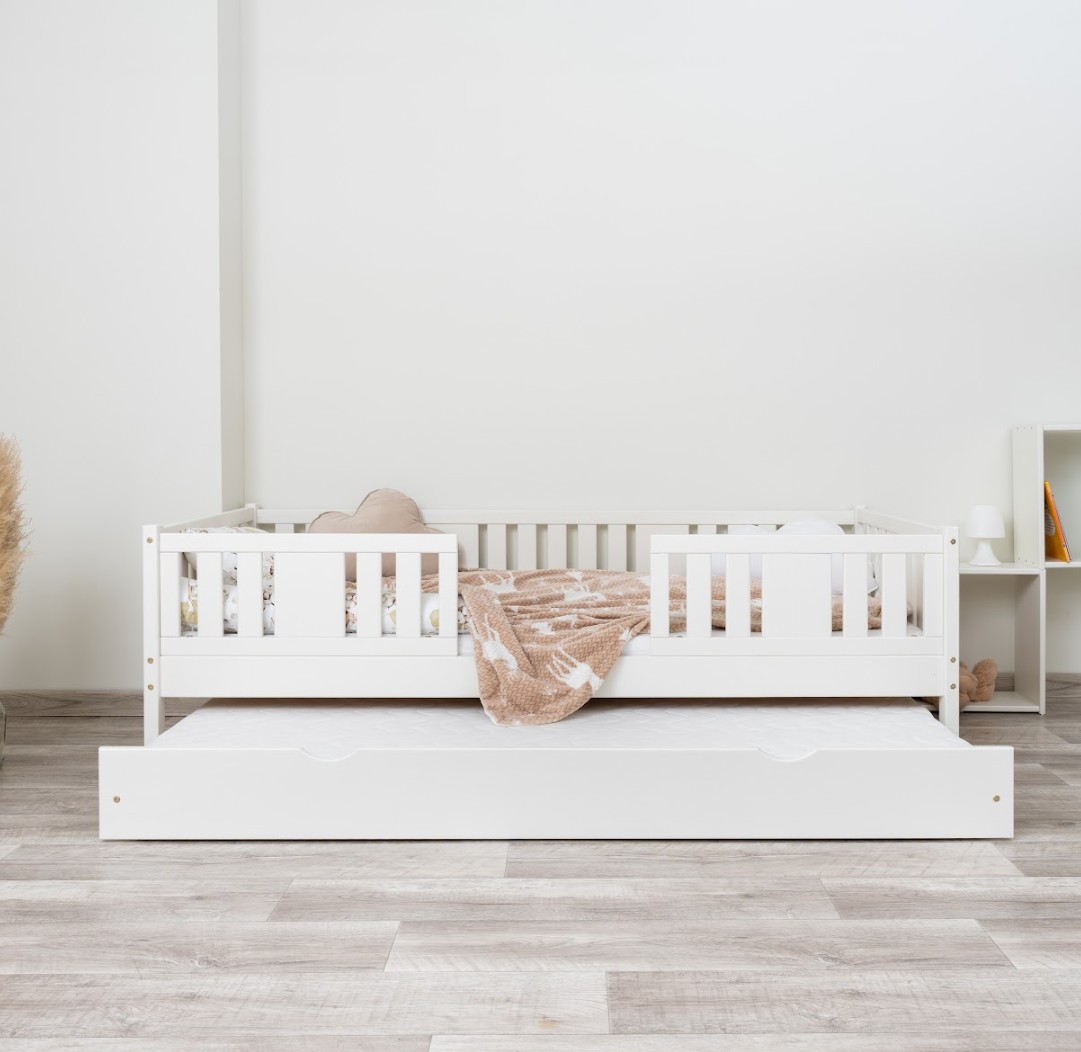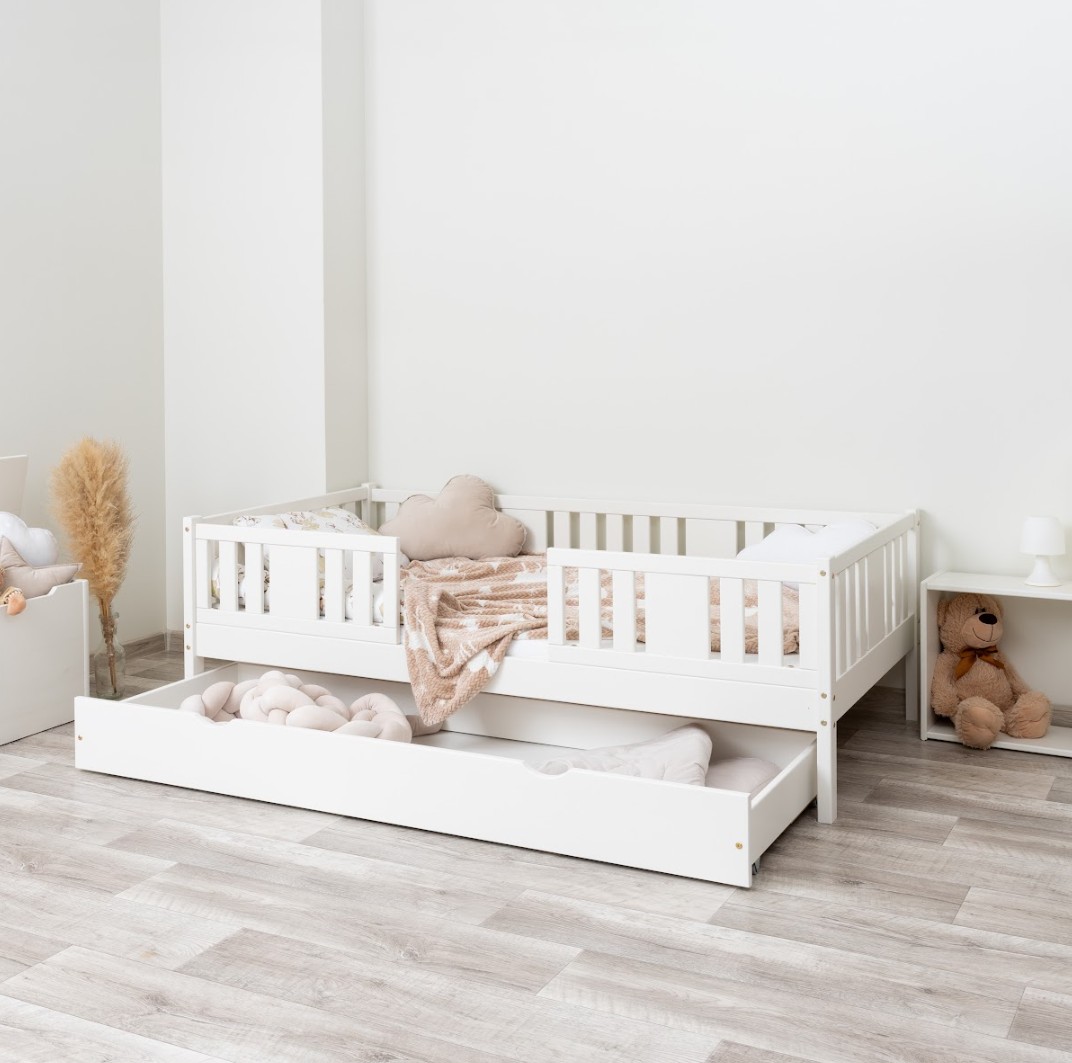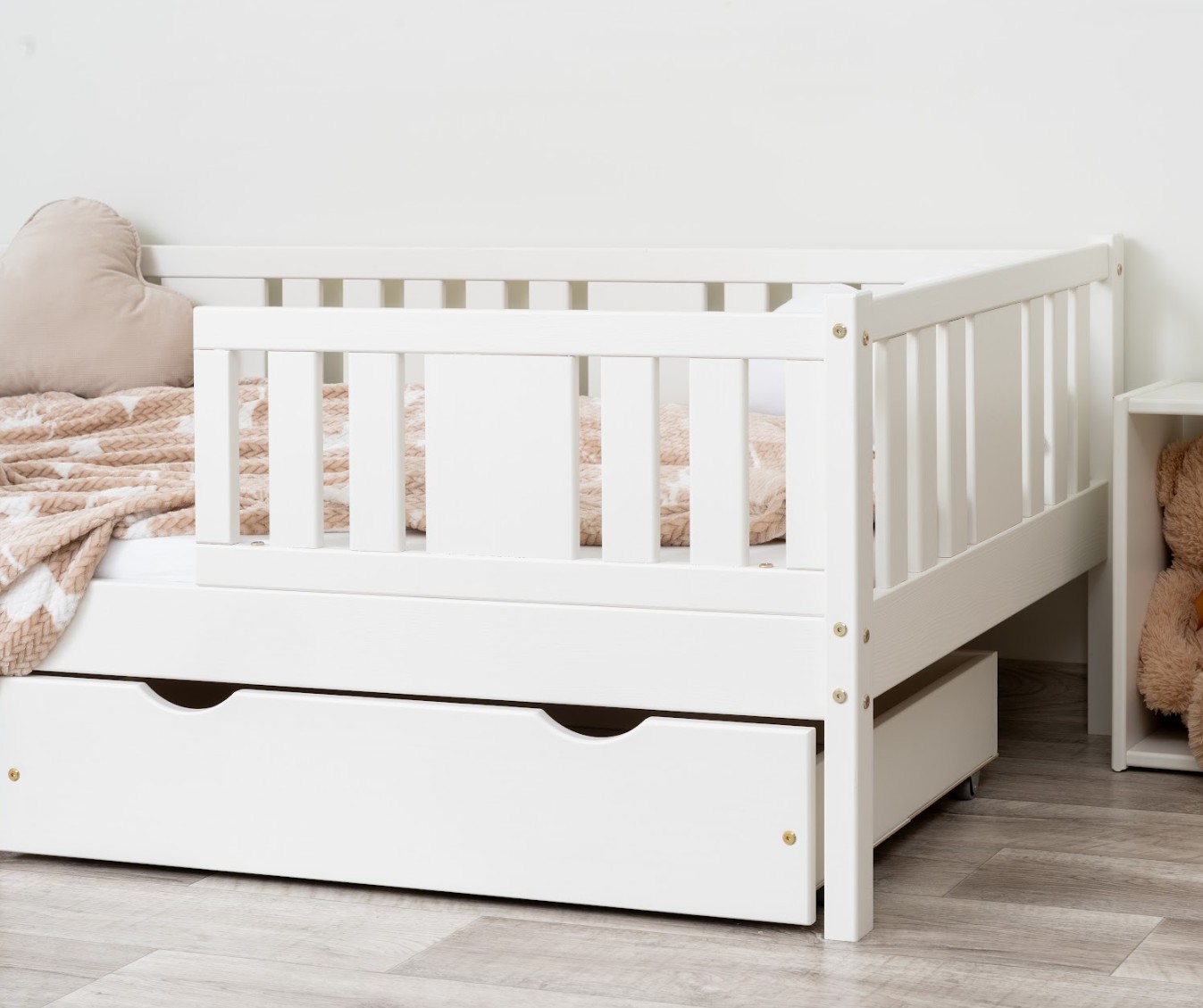 NIKO 20 cm je robustní a esteticky příjemná dětská postel, vyrobená výhradně z přírodního borovicového dřeva. Rám, zvýšený o 20 cm, dodává její praktičnosti nový rozměr – volitelnou zásuvku pod postelí lze využít na ložní prádlo, hračky nebo dokonce jako přistýlku pro druhé dítě. Tento model kombinuje skandinávský styl, odolné dřevo a chytrá řešení pro moderní rodinné interiéry. Každý prvek postele NIKO 20 cm je vyroben z lepeného borovicového dřeva, které je ceněno pro svou odolnost, stabilitu a přírodní vzhled. Dřevo je pečlivě broušeno a hrany jsou jemně zaoblené, takže je zcela bezpečné pro nejmladší uživatele. Pro povrchovou úpravu byly použity ekologické barvy na vodní bázi, které splňují bezpečnostní normy. Postel nabízíme také ve verzi bez povrchových úprav - nelakované dřevo. Díky tomu ji lze snadno přizpůsobit - její vzhled můžete upravit mořením, lakováním nebo malováním dle vlastního uvážení. Každý prvek rámu byl precizně vyleštěn a hrany jsou jemně zaoblené, aby bylo zajištěno maximální pohodlí a bezpečnost. Bezpečnostní zábrany u vstupu do postele jsou odnímatelné.