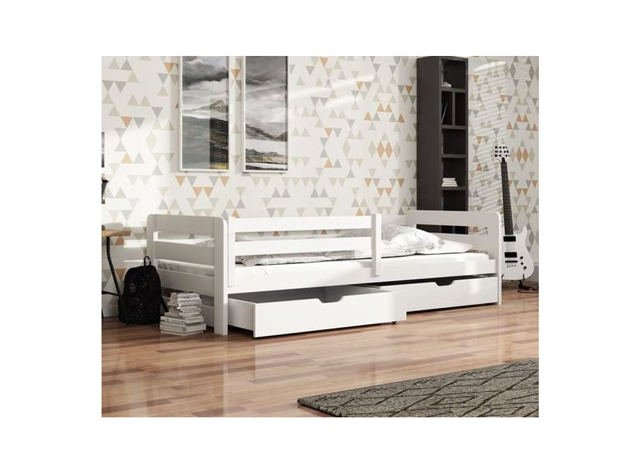 Dětská postel z masivu borovice se šuplíky EGO - 200x90 cm - bílá