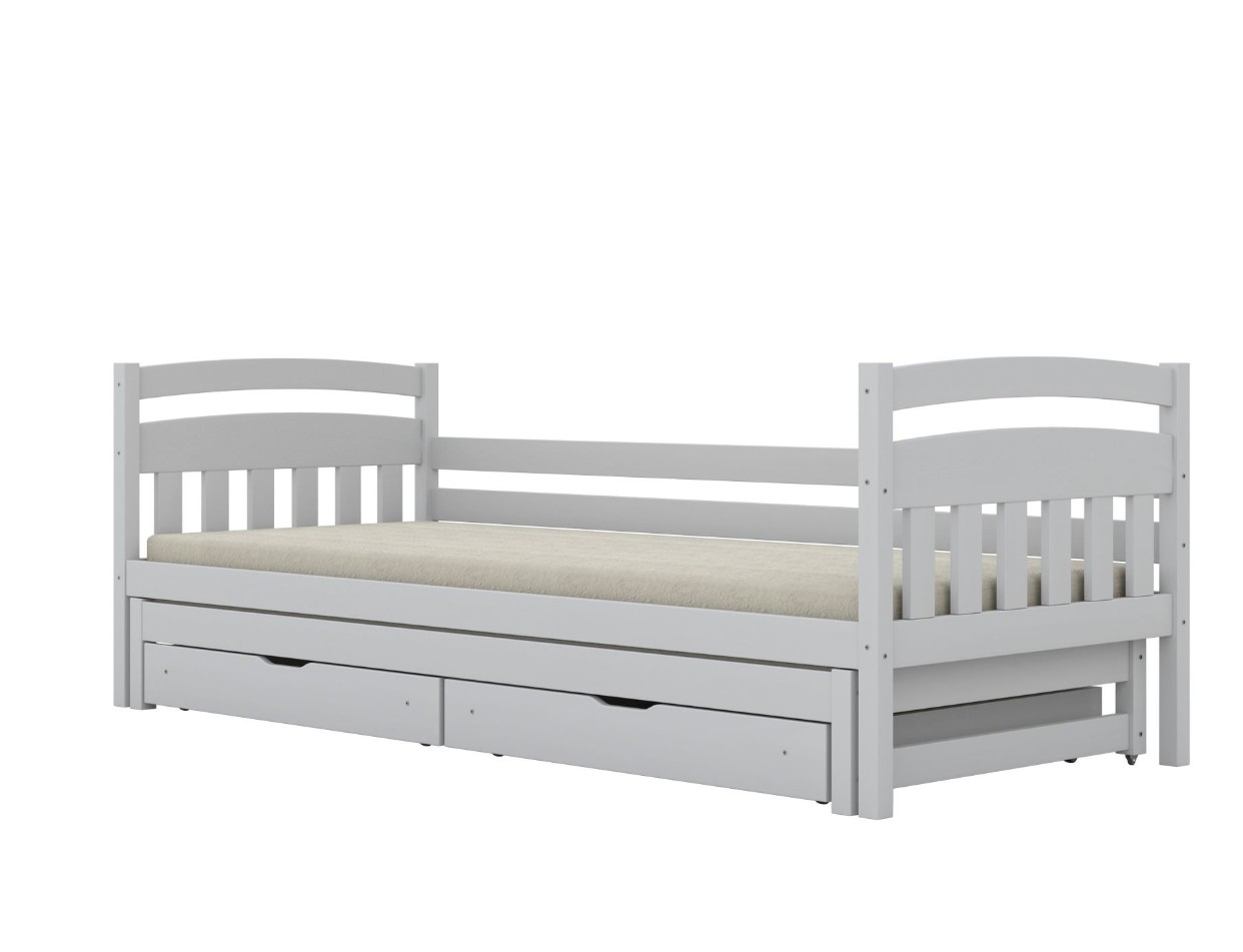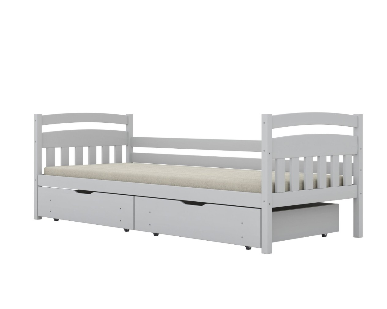 Dětská postel TOSIA v sobě spojuje bezpečnost, pohodlí a funkčnost. Díky svému jednoduchému a nadčasovému designu je perfektním doplňkem do nejrůznějších interiérů – od dětského pokoje až po moderní prostor pro mládež. Její pevná konstrukce z přírodního borovicového dřeva zajišťuje dlouhou životnost a další úložné prostory vám umožní udržet si pokoj v pořádku – což ocení jak rodiče, tak teenageři. Postel je vyrobena z masivního borovicového dřeva a je ošetřena ekologickým lakem na vodní bázi, který zvyšuje odolnost postele vůči poškození a poškrábání. Součástí postele je také pevný a odolný flex rošt vyrobený z březových lamel.