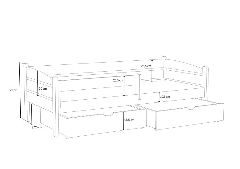 Dětská postel ZORA se vyznačuje jednoduchým designem a kvalitním zpracováním. Pevná konstrukce znamená, že postel Zora bude vašemu dítěti sloužit mnoho let. Kvalitní materiály zase zajistí, že postel poskytne vašemu dítěti zdravý, klidný a bezpečný spánek. Na její výrobu bylo použito pouze masivní borovicové dřevo nejvyšší kvality, pokryté zdravotně nezávadným lakem na vodní bázi bez zápachu. U bočnic a čel je šířka použitého materiálu 2,6 cm. Bezpečnostní zábrana zajistí vašemu dítěti bezpečný spánek po celou noc a zabrání možnosti vypadnutí. Bariérka je odnímatelná a lze ji umístit na pravou i levou stranu postele. Postel je navíc dodávána se dvěma prostornými zásuvkami, které lze využít pro ukládání lůžkovin nebo hraček. Součástí postele je také kvalitní pevný rošt. Hrany nábytku byly speciálně zaobleny, aby byla zajištěna maximální bezpečnost dítěte.