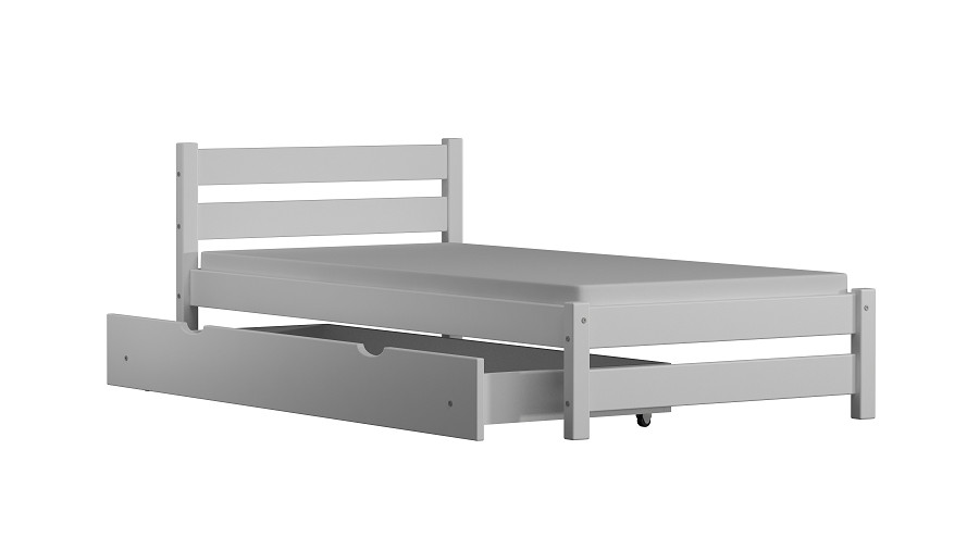 Tato dětská postel je vytvořena tak, aby ušetřila prostor v dětském pokoji. K posteli lze také dokoupit praktický a prostorný šuplík z masivu v několika variantách a různých barvách: