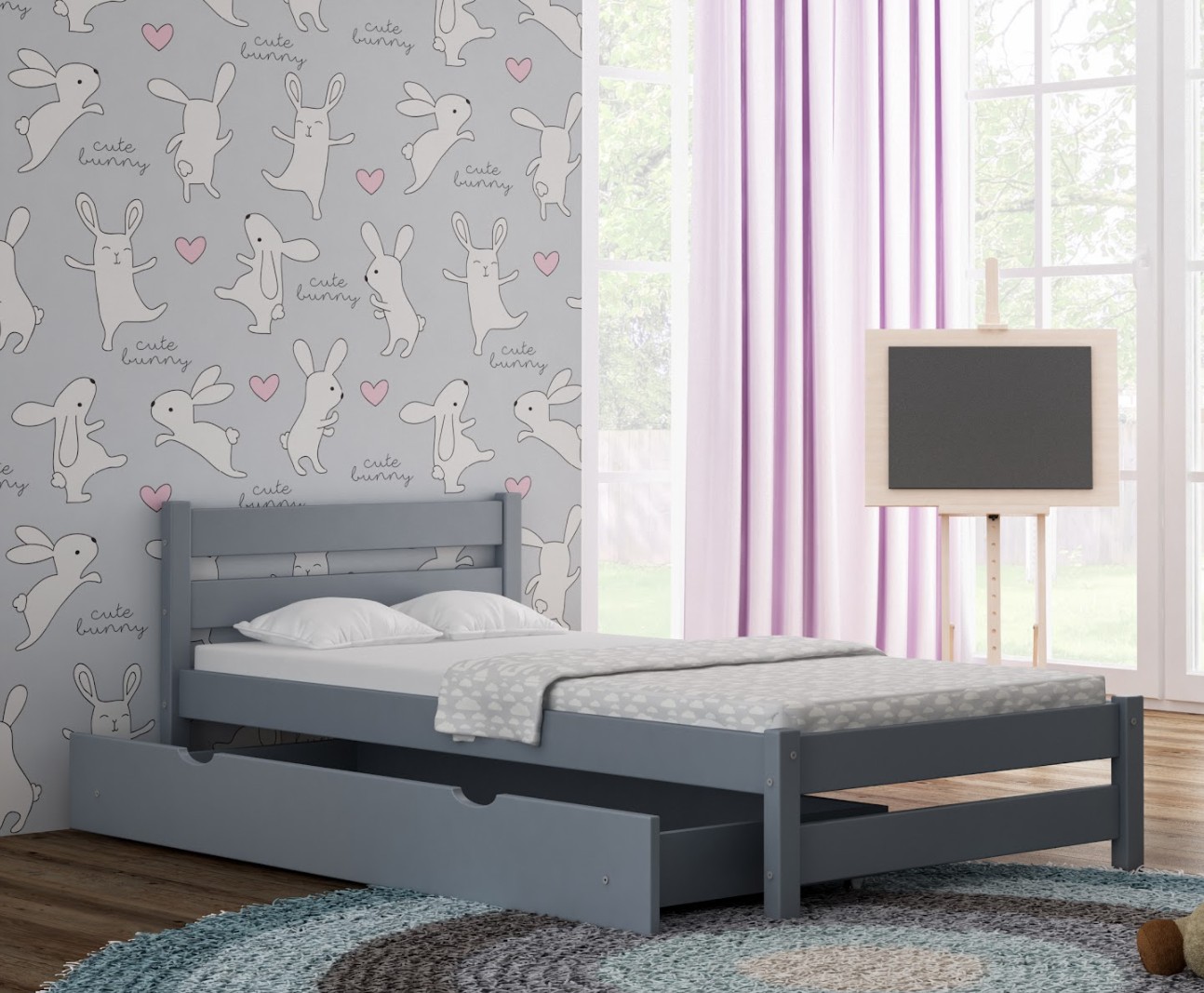 Tato dětská postel je vytvořena tak, aby ušetřila prostor v dětském pokoji. K posteli lze také dokoupit praktický a prostorný šuplík z masivu v několika variantách: