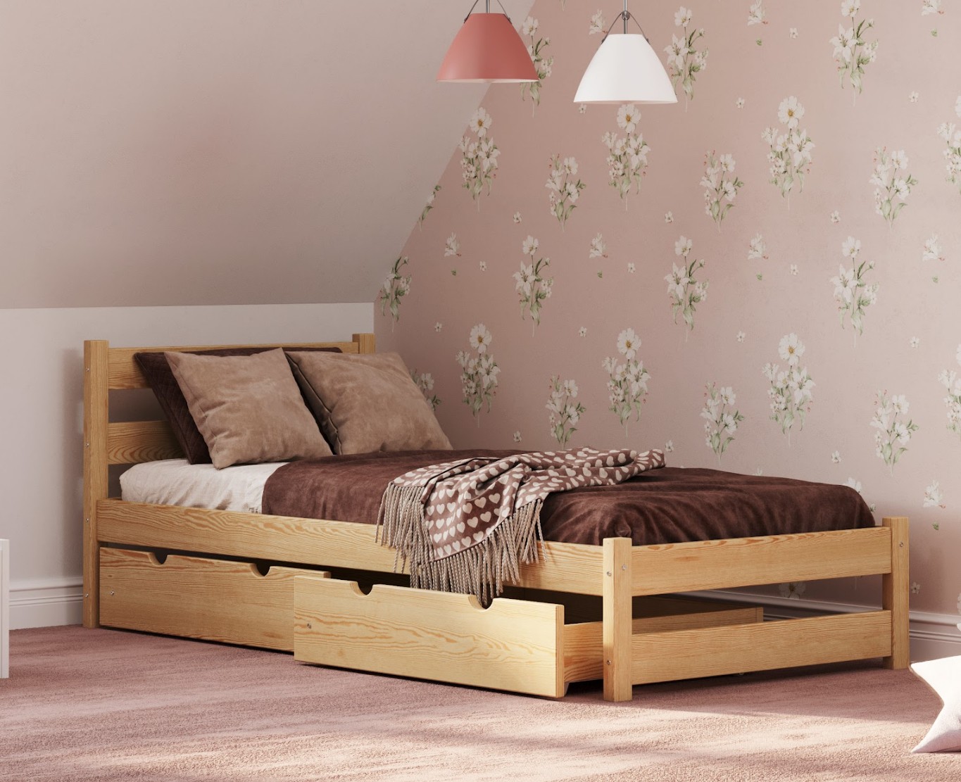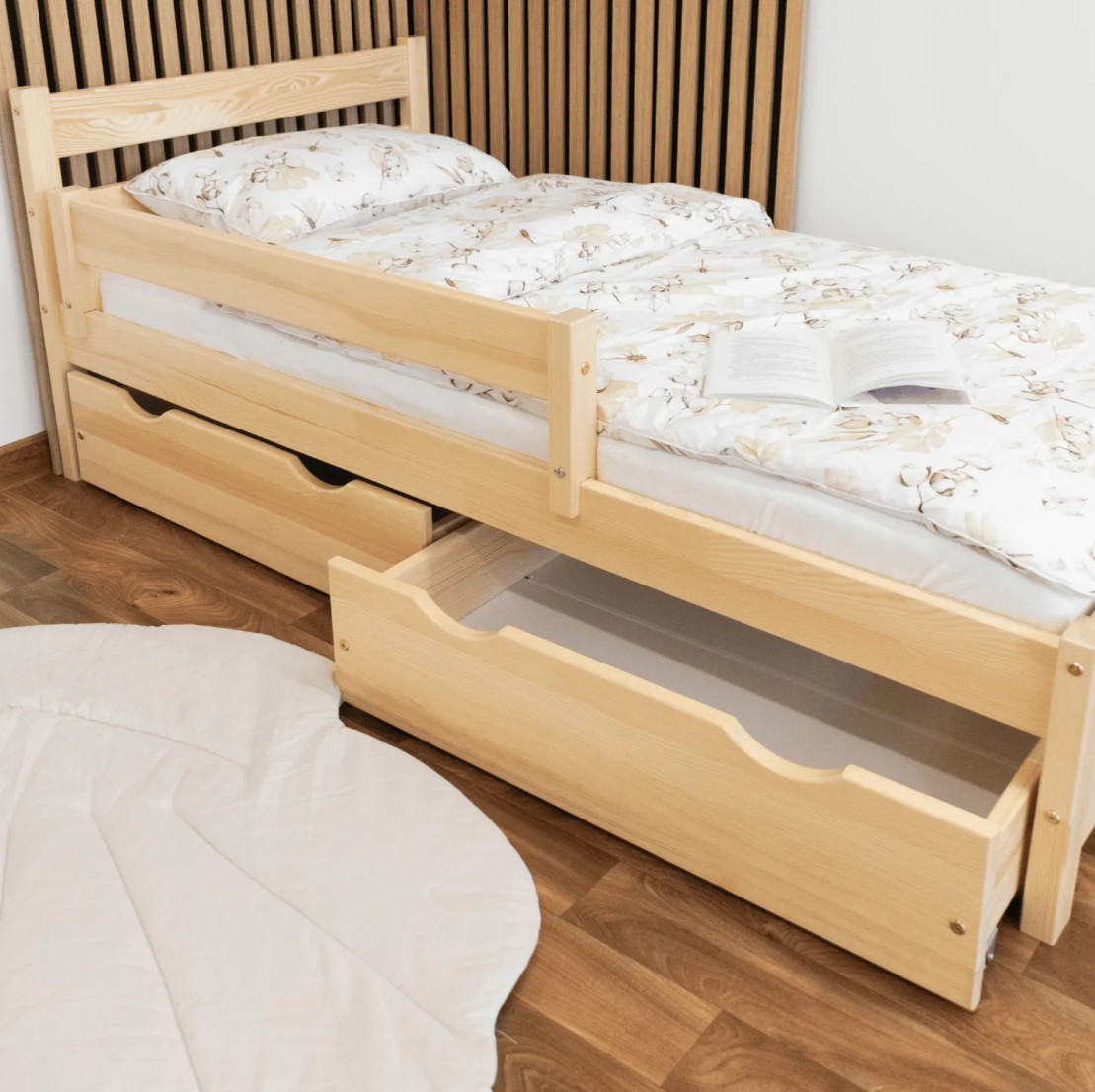 Tato dětská postel je vytvořena tak, aby ušetřila prostor v dětském pokoji. K posteli lze také dokoupit praktický a prostorný šuplík z masivu v několika variantách: