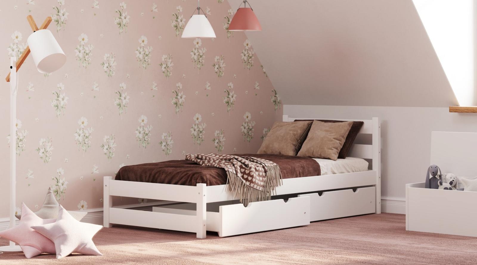 Tato dětská postel je vytvořena tak, aby ušetřila prostor v dětském pokoji. K posteli lze také dokoupit praktický a prostorný šuplík z masivu v několika variantách: