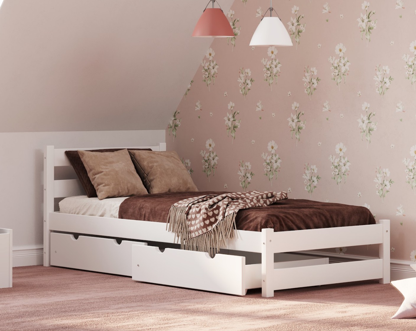 Tato dětská postel je vytvořena tak, aby ušetřila prostor v dětském pokoji. K posteli lze také dokoupit praktický a prostorný šuplík z masivu v několika variantách:
