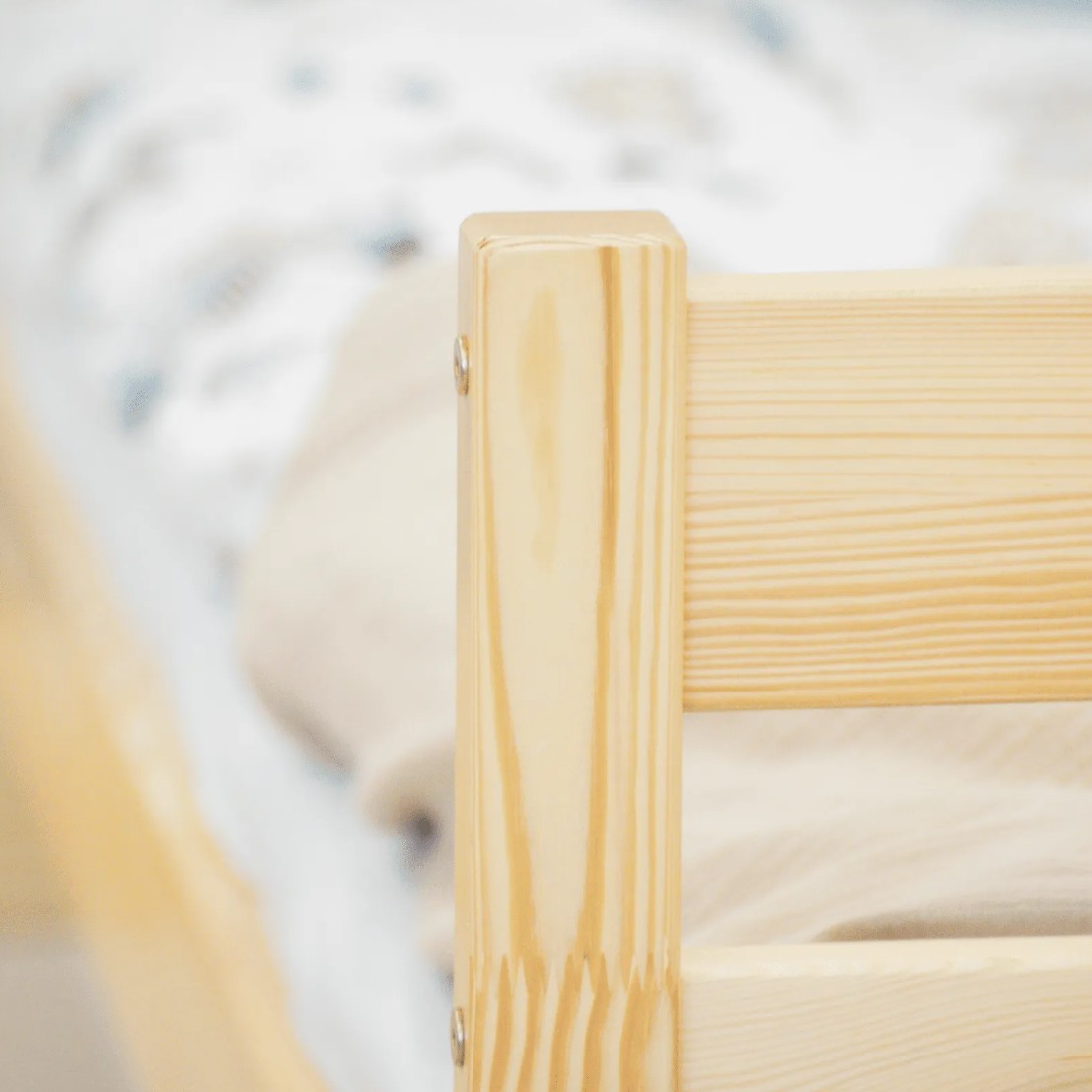 Postel je vyrobena z vysoce kvalitního borovicového dřeva se zvýšenou nosností až na 100 kg. K posteli lze také přikoupit ještě jednu kratší odnímatelnou ochrannou bariéru, kterou můžete jednoduše připevnit po celé délce postele. Vaše dítě se tak bude cítit v klidu a bezpečí. Dětská postel zaujme svým krásným vzhledem a vytváří tak komplexní prvek, který se bude vyjímat v každém dětském pokoji.