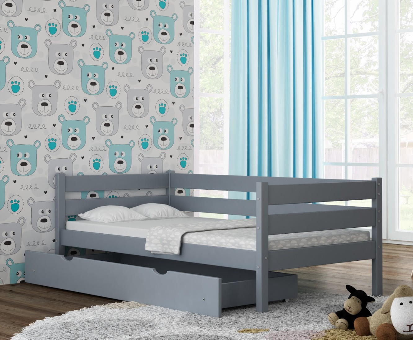 Dětská postel z masivu KARAS Z patří mezi nejoblíbenější dětské postele, které vás zaujmou nejen svým krásným vzhledem, ale také praktičností! Postele z této řady jsou velmi pečlivě vyrobeny, mají robustní konstrukci a jsou propracovány do posledního detailu. Borovicové dřevo, které se k jejich výrobě používá, je té nejvyšší kvality. Postel nabízíme v barevném provedení borovice, bílá a šedá barva. Díky tomu se tyto postele perfektně hodí jak do holčičích, tak i chlapeckých dětských pokojů.