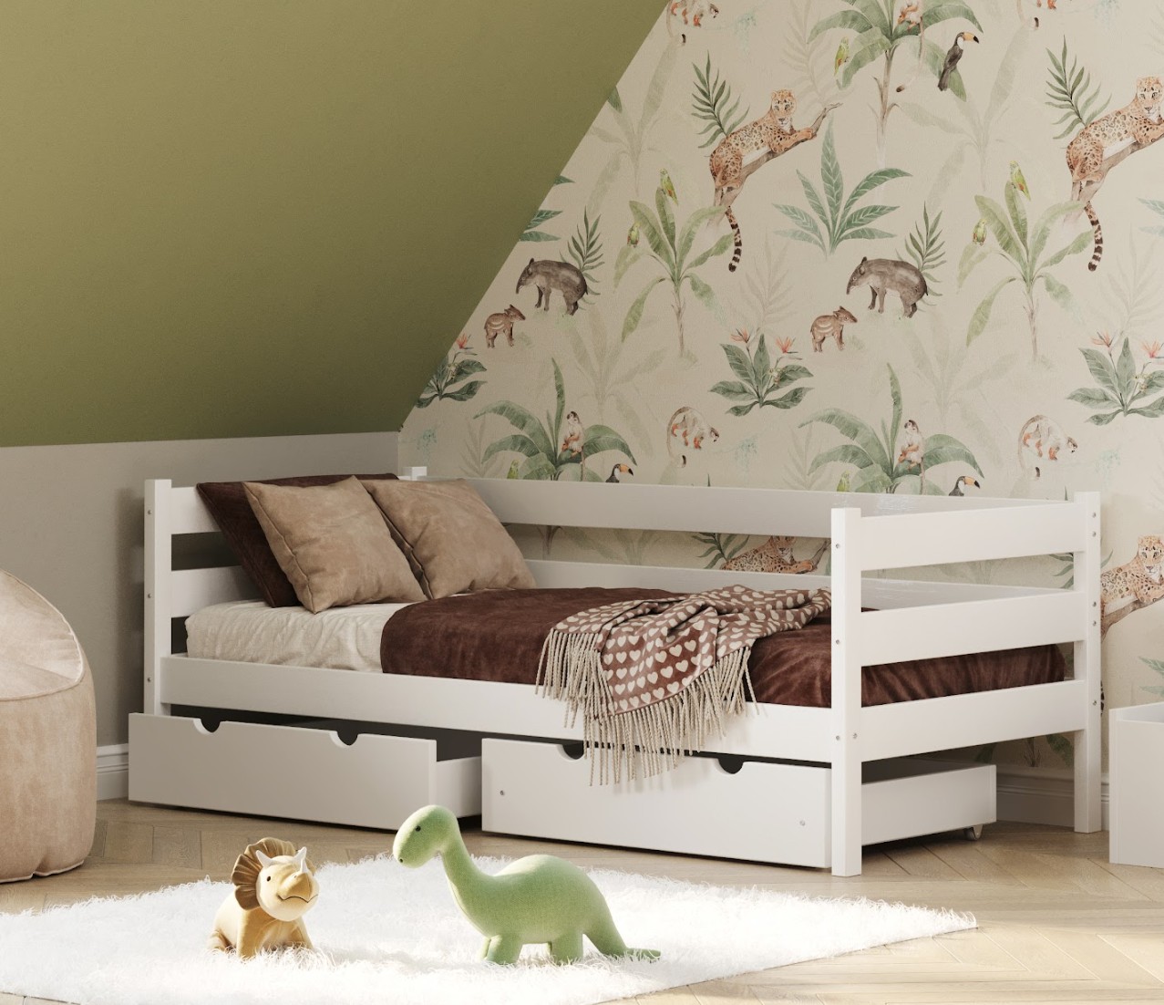 Tato dětská postel je vytvořena tak, aby ušetřila prostor v dětském pokoji. K posteli lze také dokoupit praktický a prostorný šuplík z masivu v několika variantách: