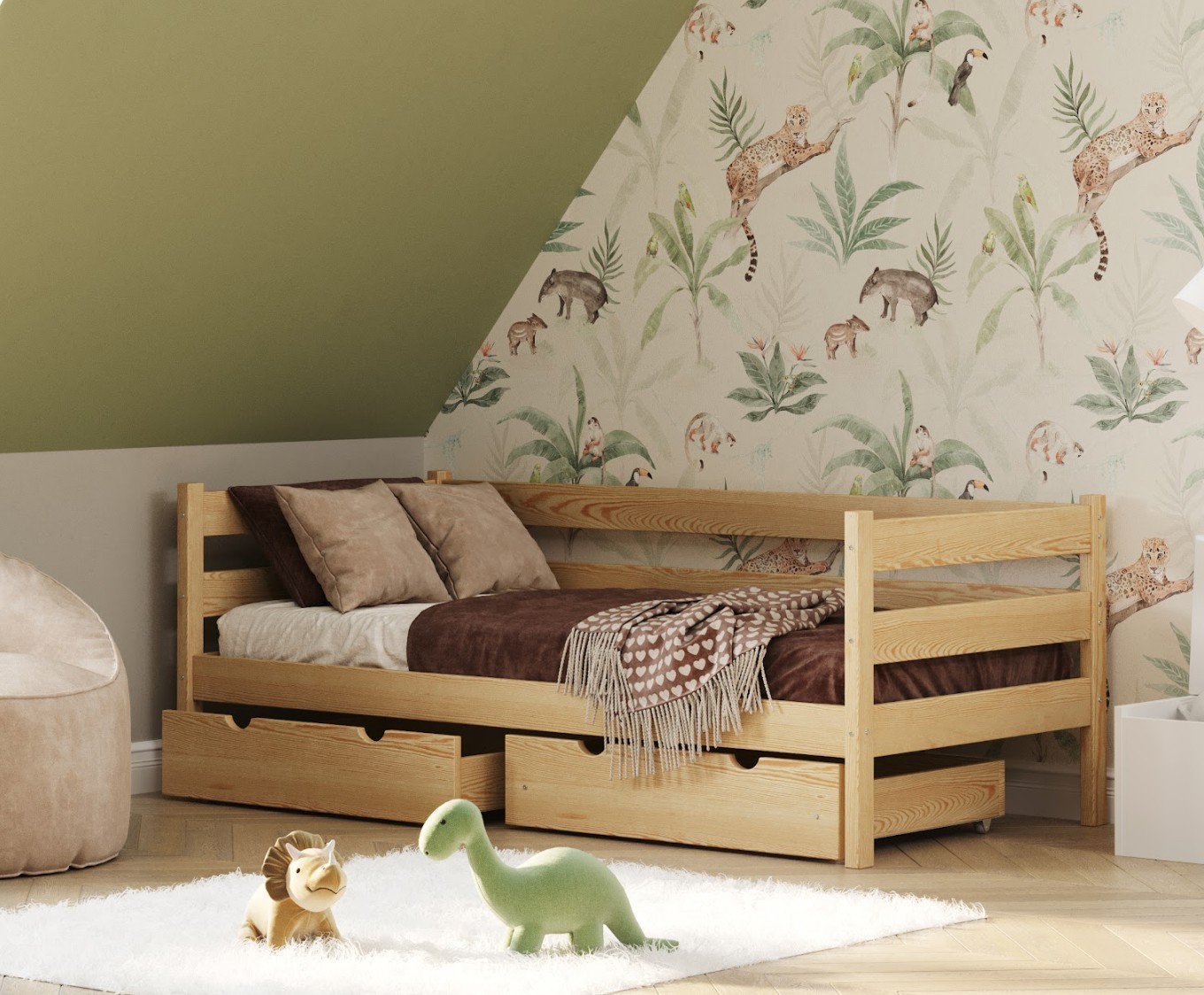 Postel je vyrobena z vysoce kvalitního borovicového dřeva se zvýšenou nosností až na 100 kg. K posteli lze také přikoupit ještě jednu kratší odnímatelnou ochrannou bariéru, kterou můžete jednoduše připevnit po celé délce postele. Vaše dítě se tak bude cítit v klidu a bezpečí. Dětská postel zaujme svým krásným vzhledem a vytváří tak komplexní prvek, který se bude vyjímat v každém dětském pokoji.