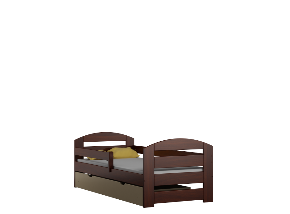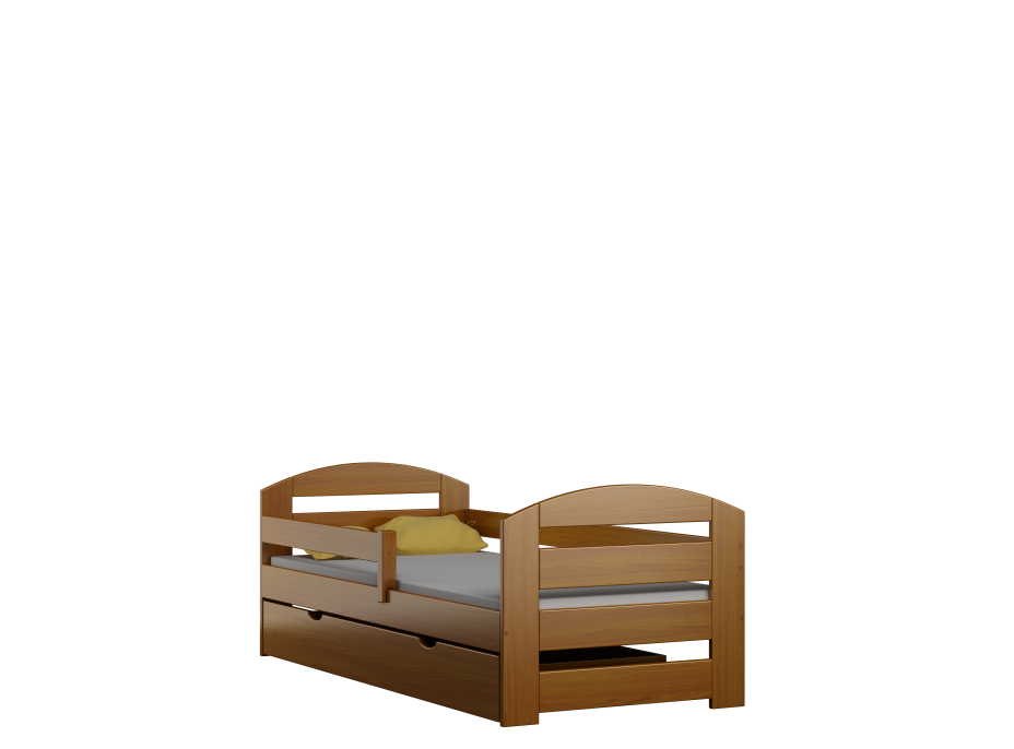 Postel je vyrobena z vysoce kvalitního borovicového dřeva se zvýšenou nosností až na 100 kg. Konstrukce postele je uzpůsobena tak, aby zabránila pádu dítěte, a to díky ochranným bariérám. Vaše dítě se tak bude cítit v klidu a bezpečí. Součástí postele je pevná ochranná bariéra, která lze namontovat k čelu postele jak z pravé strany, tak i z levé strany. Dětská postel zaujme svým krásným vzhledem a vytváří tak komplexní prvek, který se bude vyjímat v každém dětském pokoji.