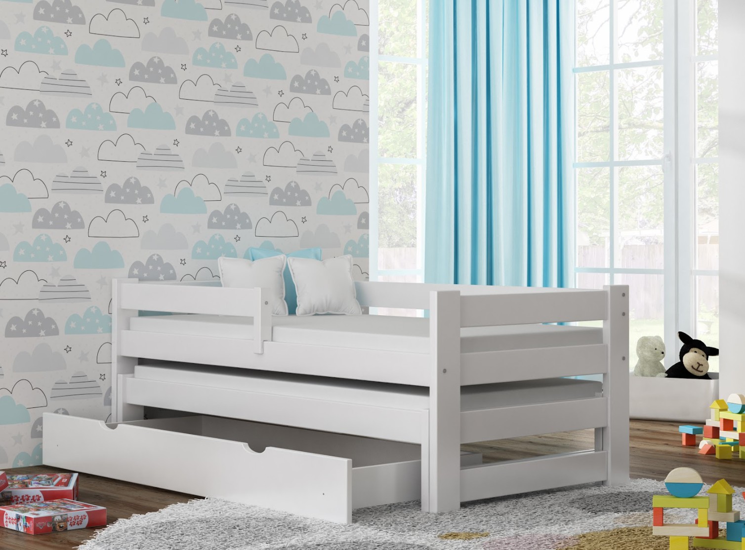 Tato dětská postel je vytvořena tak, aby ušetřila prostor v dětském pokoji. K posteli lze také dokoupit praktický a prostorný šuplík z masivu v několika variantách: