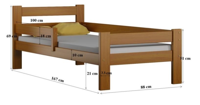 Rozměry postele: 167x88 cm, ložná plocha pro matraci 160x80 cm.