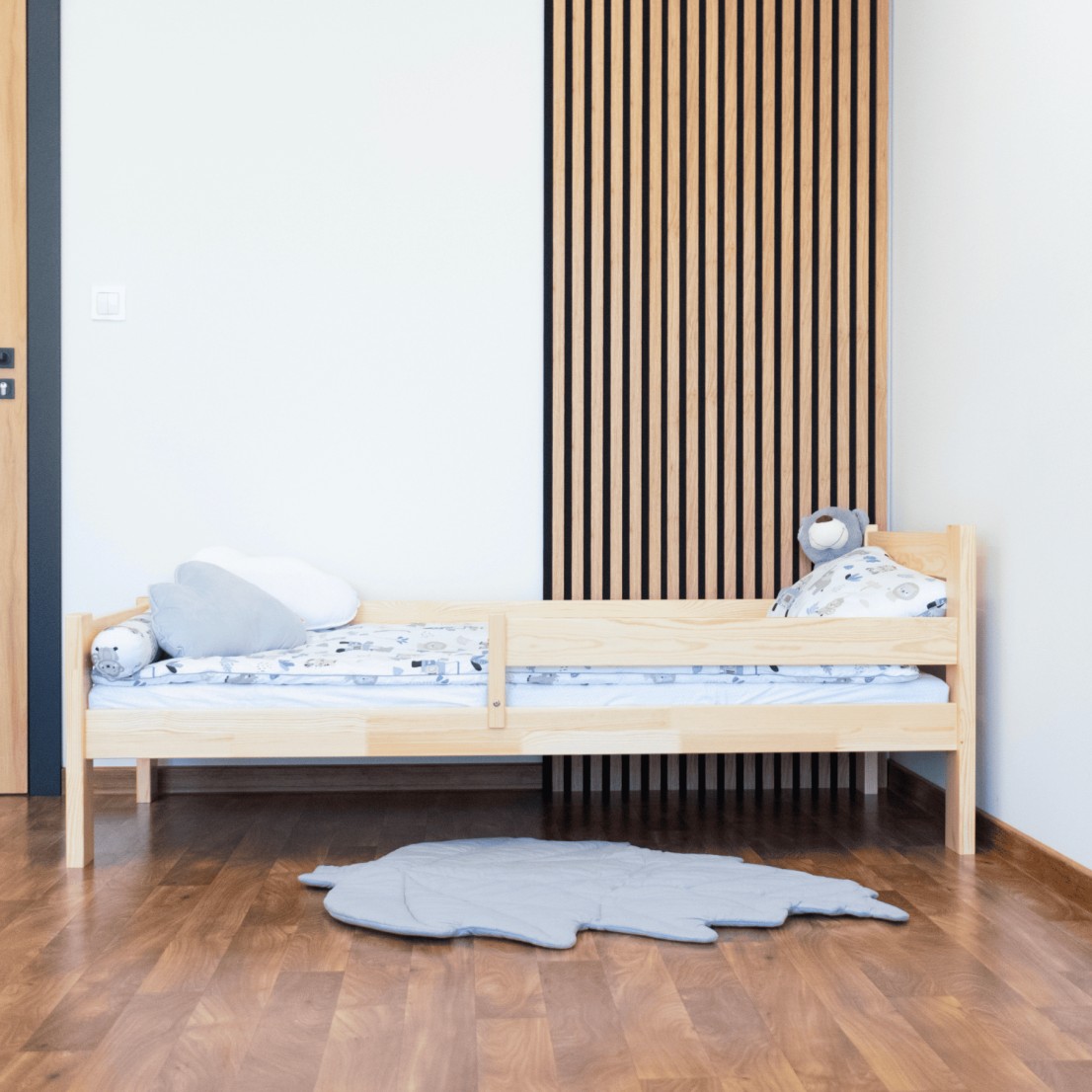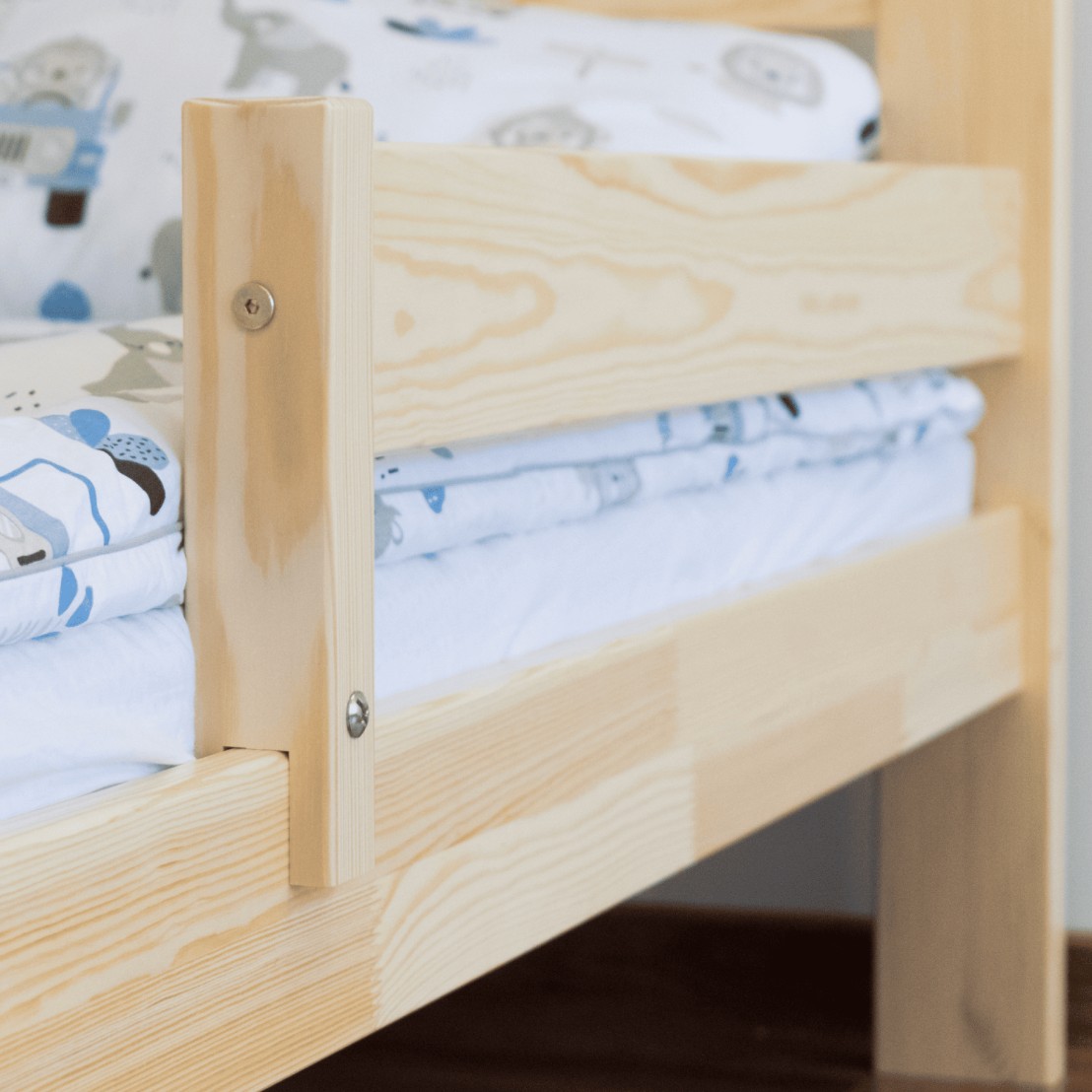 Postel je vyrobena z vysoce kvalitního borovicového dřeva se zvýšenou nosností až na 100 kg. Konstrukce postele je uzpůsobena tak, aby zabránila pádu dítěte, a to díky ochranným bariérám. Vaše dítě se tak bude cítit v klidu a bezpečí. Součástí postele je pevná ochranná bariéra, která lze namontovat k čelu postele jak z pravé strany, tak i z levé strany. Dětská postel zaujme svým krásným vzhledem a vytváří tak komplexní prvek, který se bude vyjímat v každém dětském pokoji.