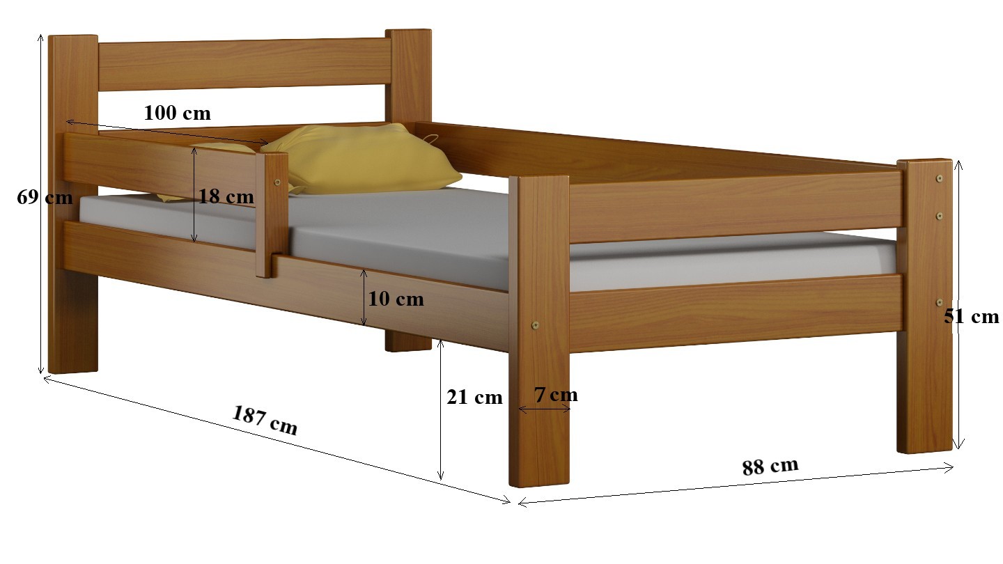 Rozměry postele: 187x88 cm, ložná plocha pro matraci 180x80 cm.