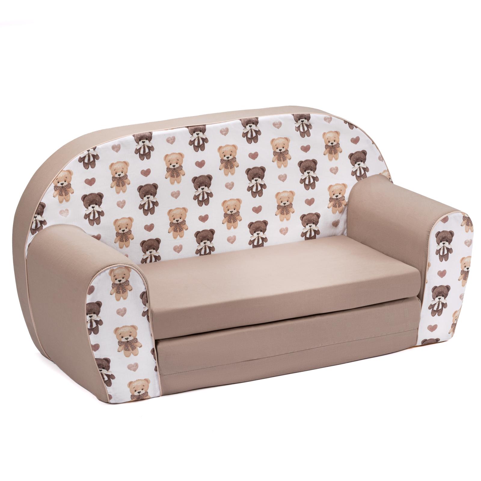 Dětská rozkládací JUNIOR pohovka Medvídci - bílá/hnědá