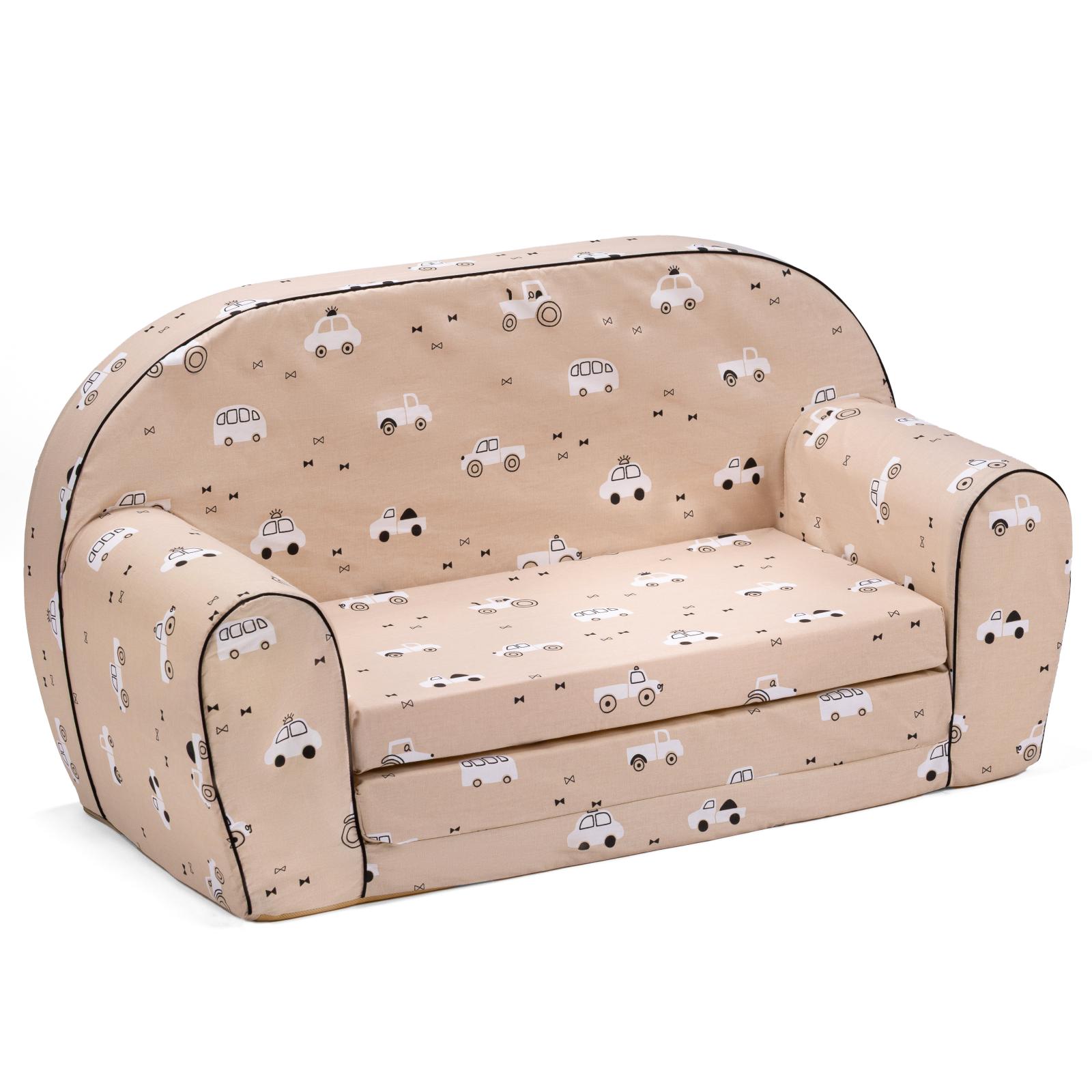 Dětská rozkládací MINI pohovka Autíčka - béžová