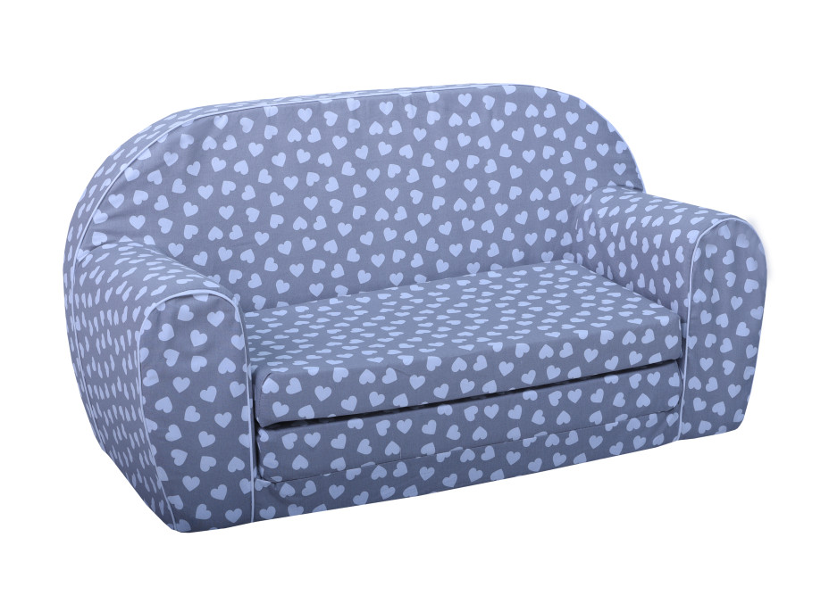 Dětská rozkládací MINI pohovka BÍLÁ SRDÍČKA - šedá
