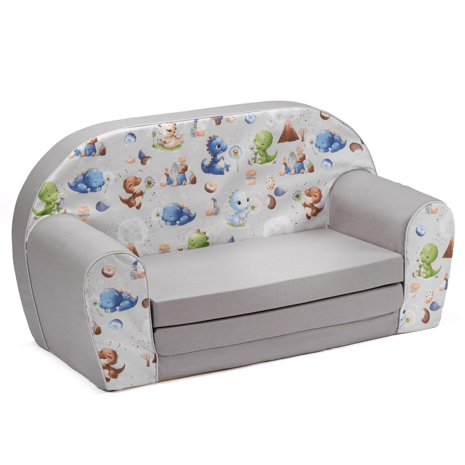 Dětská rozkládací MINI pohovka Dinosauři - šedá