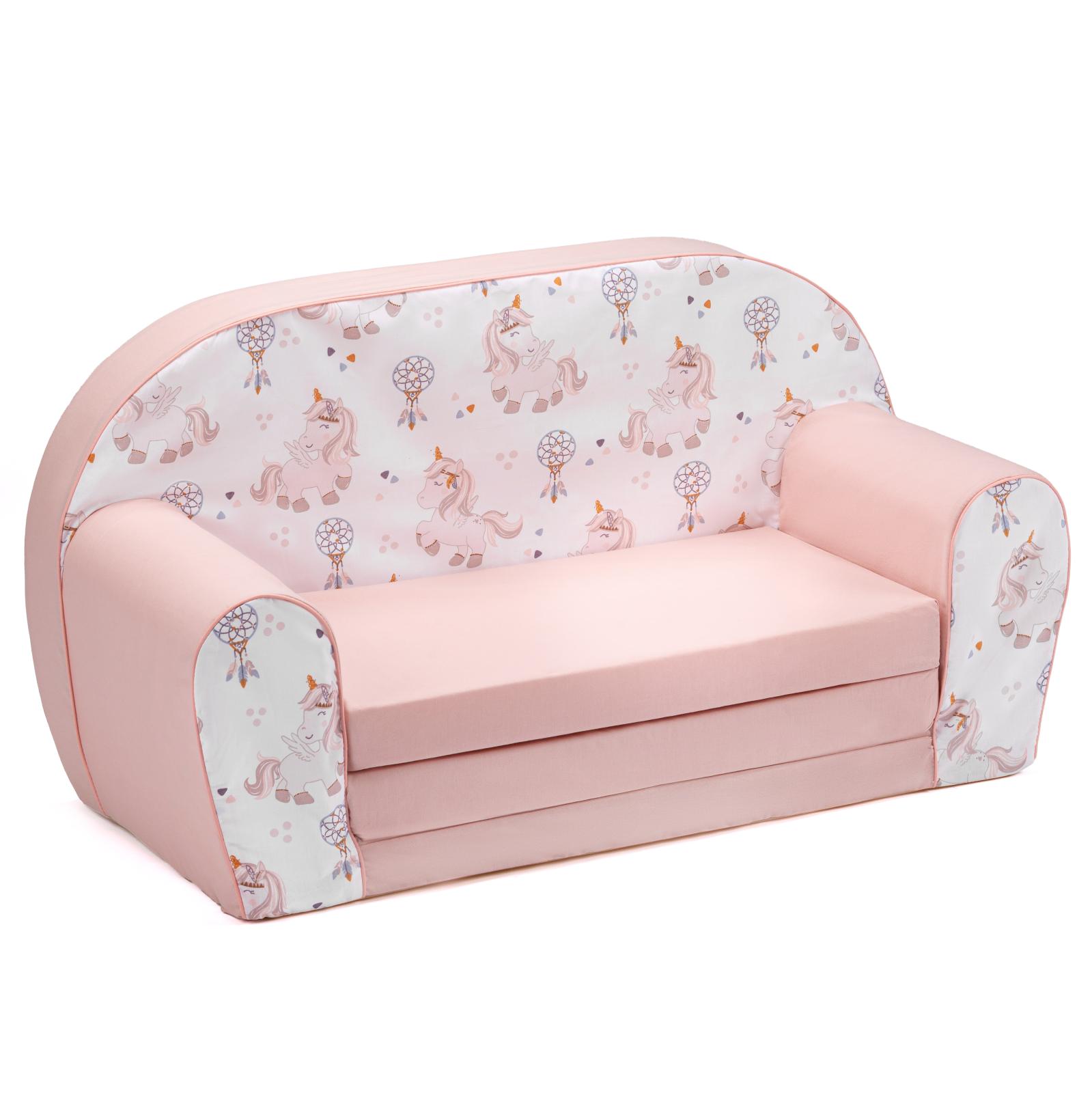 Dětská rozkládací MINI pohovka Jednorožci - bílá/růžová