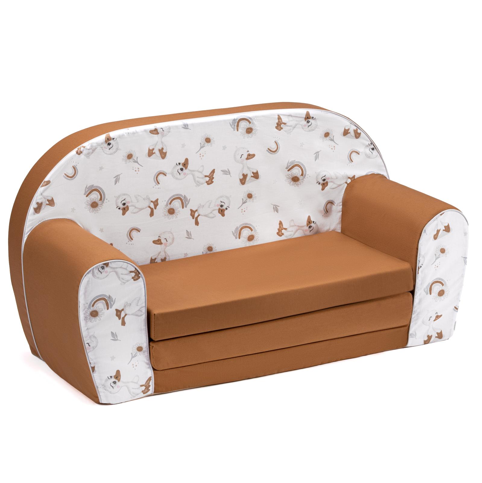 Dětská rozkládací MINI pohovka Kačenky - bílá/hnědá
