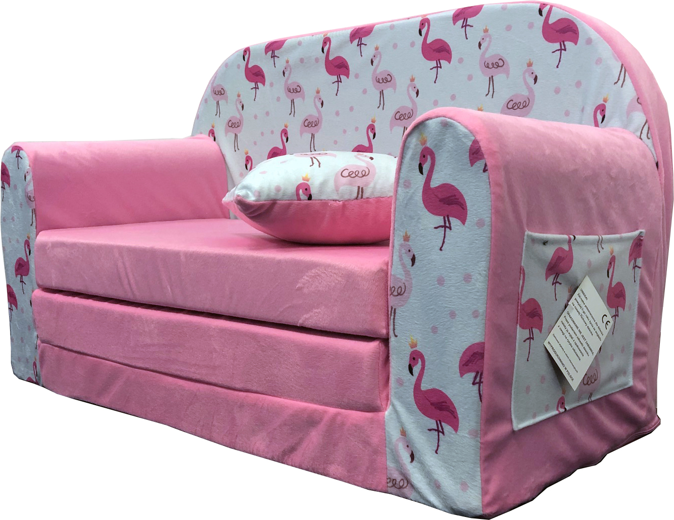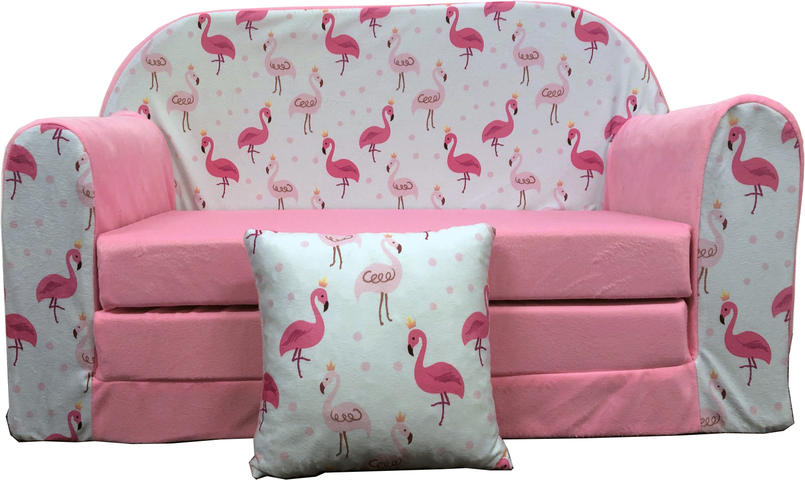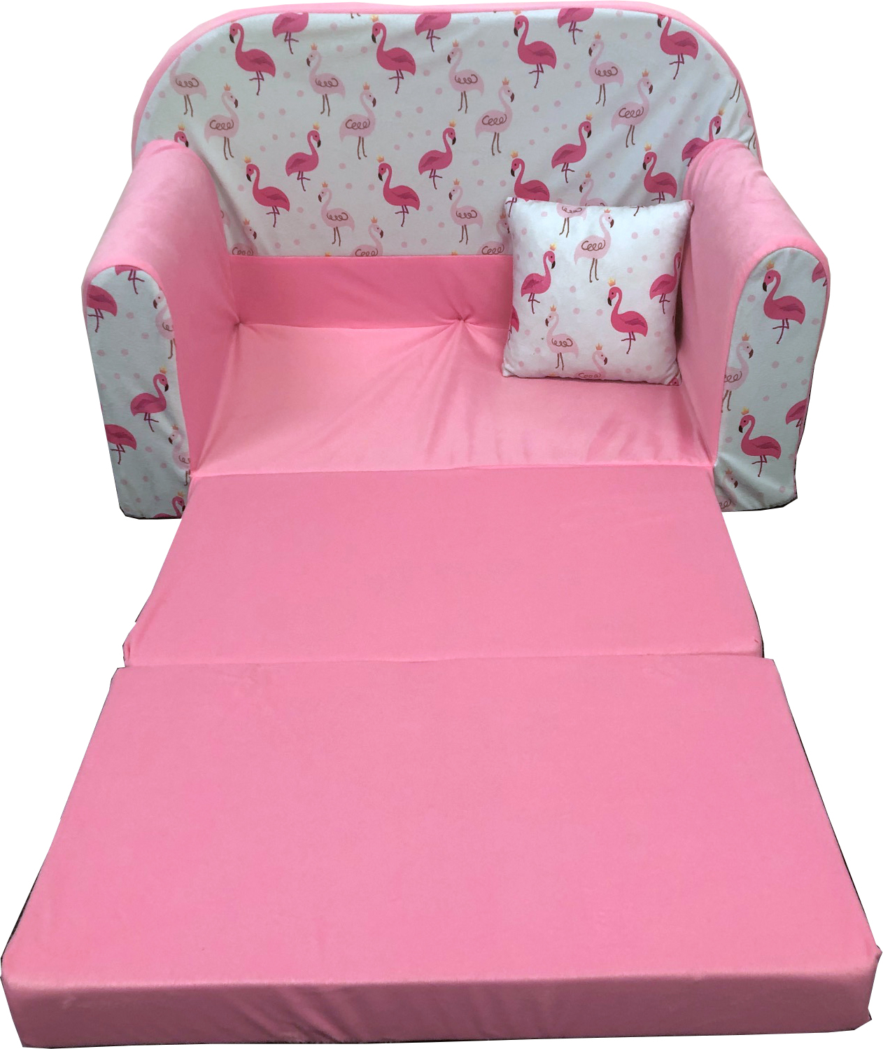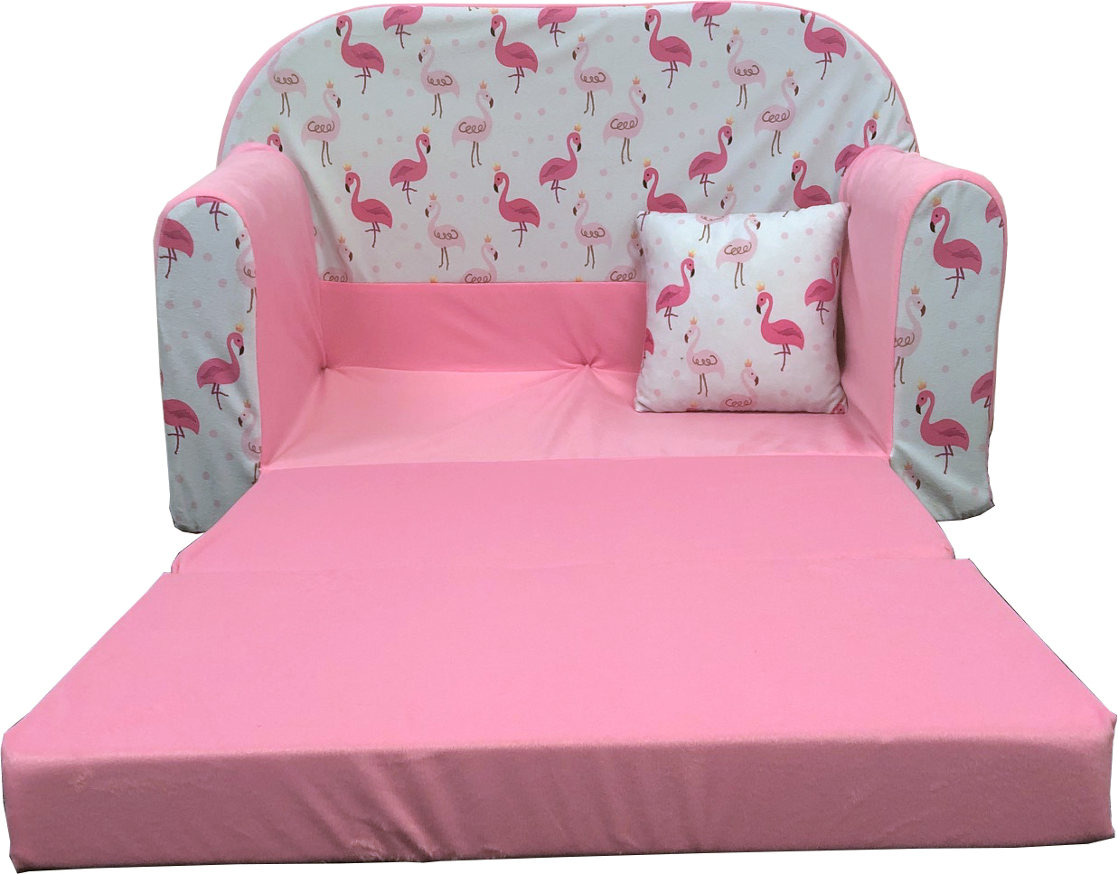 Dětská rozkládací pohovka PLAMEŇÁCI + polštářek ZDARMA - světle růžová