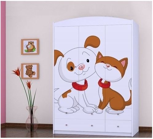Dětský pokoj Pejsek a kočička DĚTSKÉ ŠATNÍ SKŘÍNĚ - kvalitní skříně pro děti do dětských pokojů.