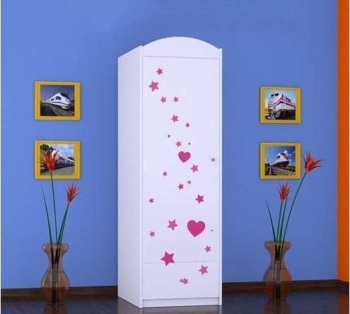 NÁŠ TIP: Ve stejném motivu jako tuto dětskou skříň můžete u nás zakoupit také dětskou postel, komodu, box na hračky, dětskou poličku, psací stůl nebo úložný regál.