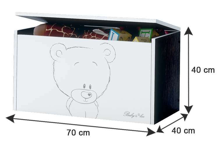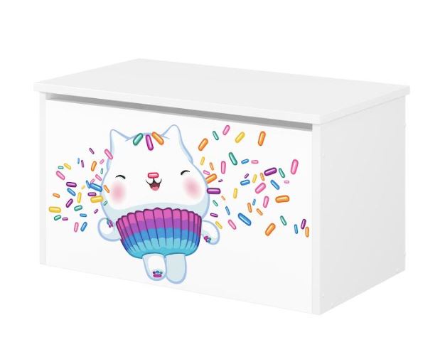 Každé dítě si zamiluje tuto truhlu na hračky s motivem oblíbené postavičky Gábinina kouzelného domku. Truhla je vyrobena z kvalitního materiálu a má nadčasový design. Truhla je vyrobena z lamino desek o tloušťce 16 mm, které zajišťují vysokou kvalitu. Motiv na truhle je vytvořen pomocí ekologických a nezávadných barev, které jsou bezpečné pro zdraví dítěte. Potisk disponuje krásnými sytými barvami, které jsou chráněny speciálním laminátem proti oděru a vyblednutí. Truhla na hračky je také snadno omyvatelná, což usnadňuje její údržbu.