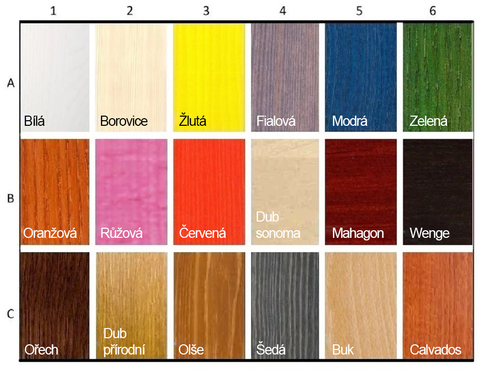 Aplikace barev je formou lazurování. Tento styl je velice oblíbený hlavně díky tomu, že pod jemným barevným nátěrem je stále velmi zřetelná struktura masivního dřeva. Barvy použité při nátěru postelí neobsahují fungicidy, mají příslušné atesty a jsou bezpečné a nezávadné.
