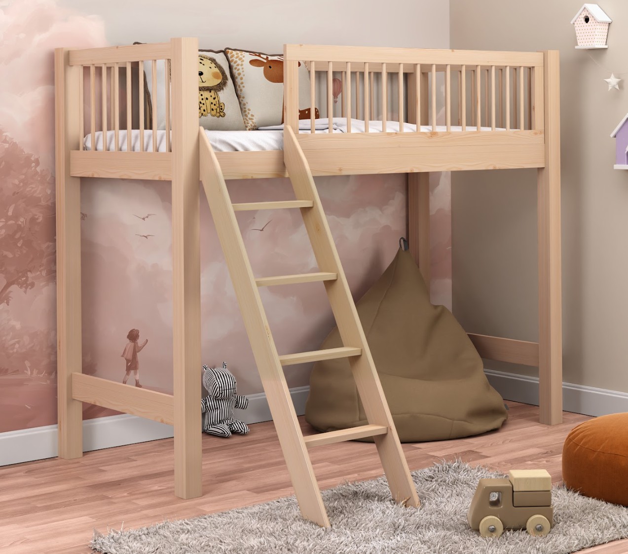 Dětská vyvýšená postel EVI je perfektním řešením pro dětský pokoj, které kombinuje maximální využití prostoru, každodenní pohodlí a moderní, ale zároveň útulný design. Díky vyvýšenému designu získáte další prostor pro hraní, studium nebo úložný prostor a vaše dítě má svou vlastní jedinečnou zónu – malý svět jen pro sebe. Postel je vyrobena ze 100% přírodního borovicového dřeva, které je ošetřeno třemi vrstvami ekologického laku. Výhodou dřeva je jeho přirozenost a zdravé mikroklima – borovice neobsahuje žádná umělá plniva a její struktura podporuje lepší cirkulaci vzduchu. Šikmý a stabilní žebřík usnadňuje bezpečný přístup do postele. Žebřík je univerzální - lze jej umístit na pravou i levou stranu postele. Postel EVI přináší radost a vzrušení i dětem. Spaní nahoře, lezení po žebříku a vlastní „prostor“ promění každodenní ukládání ke spánku v dobrodružství. Tento kus nábytku stimuluje fantazii, podporuje kreativní hru a dává dětem pocit nezávislosti. Není to jen postel – je to místo, kde se rodí dětské sny, zábava a vzpomínky.